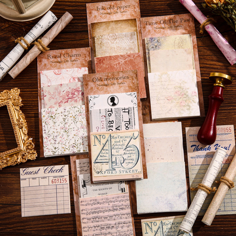 怀旧生活复古素材贴纸跨境手帐背景打底纸造景怀旧英文装饰贴画