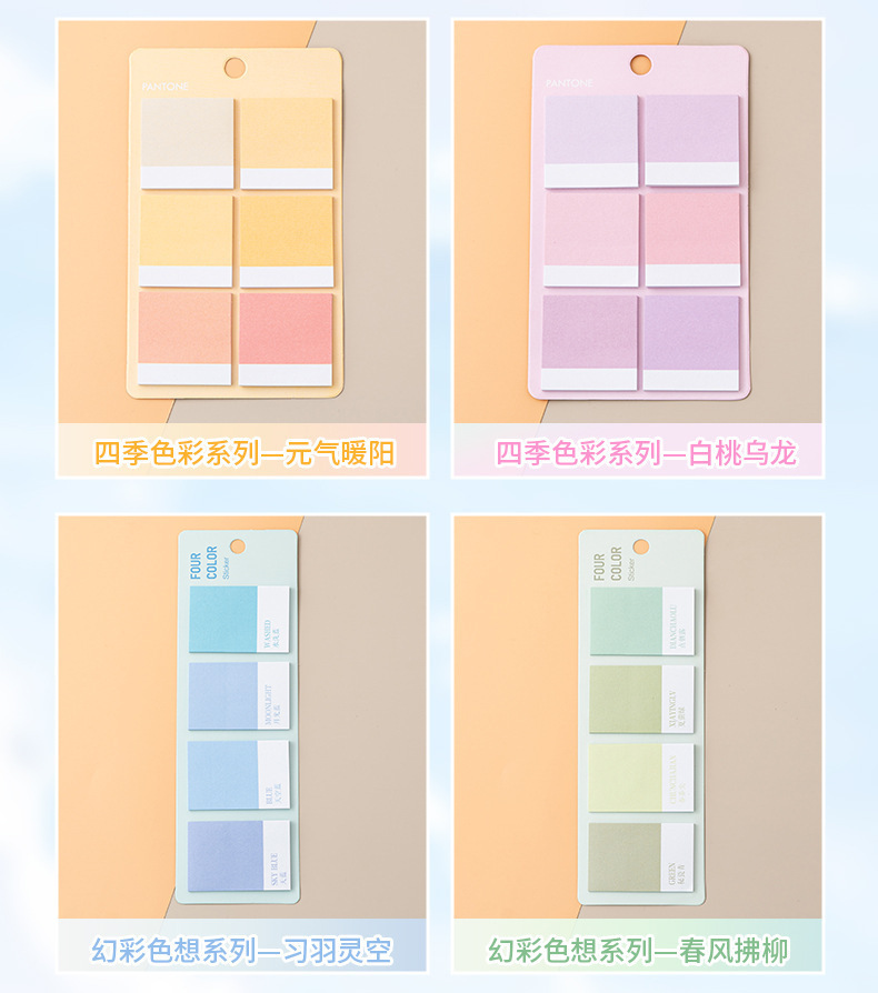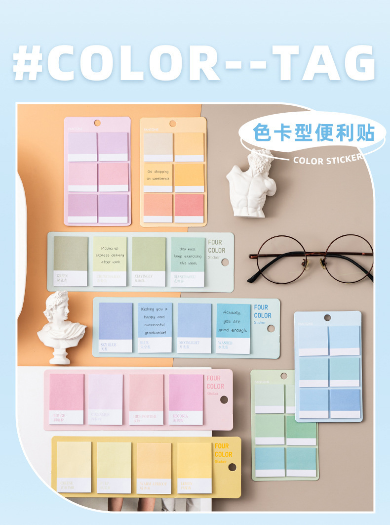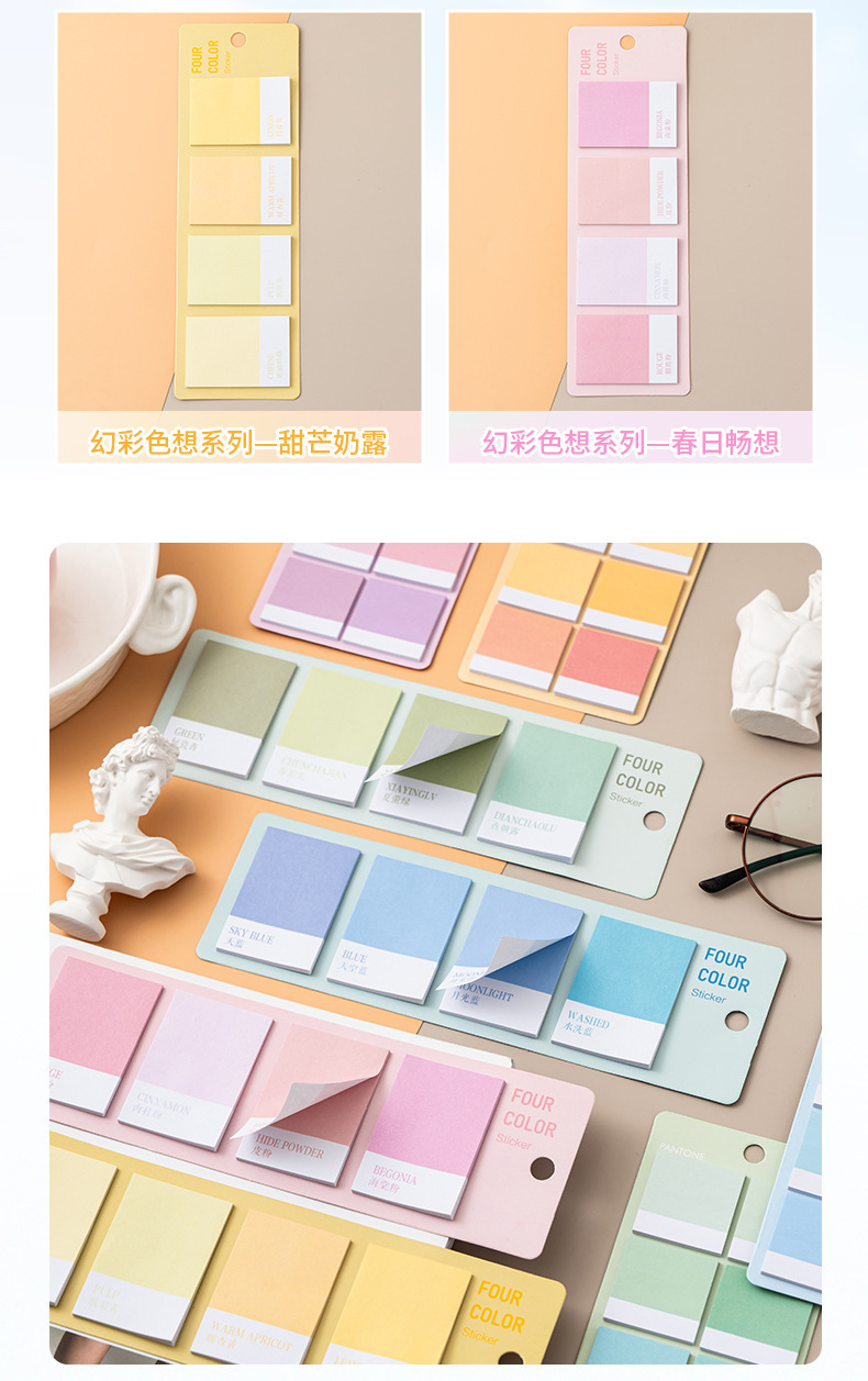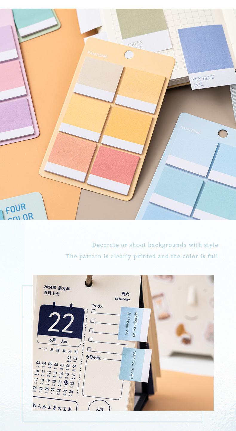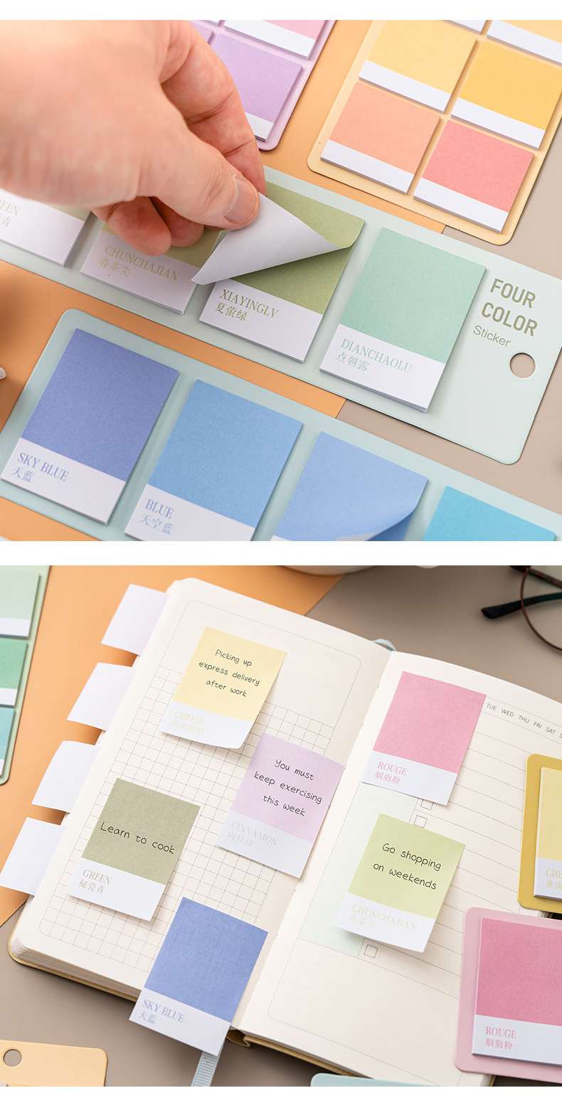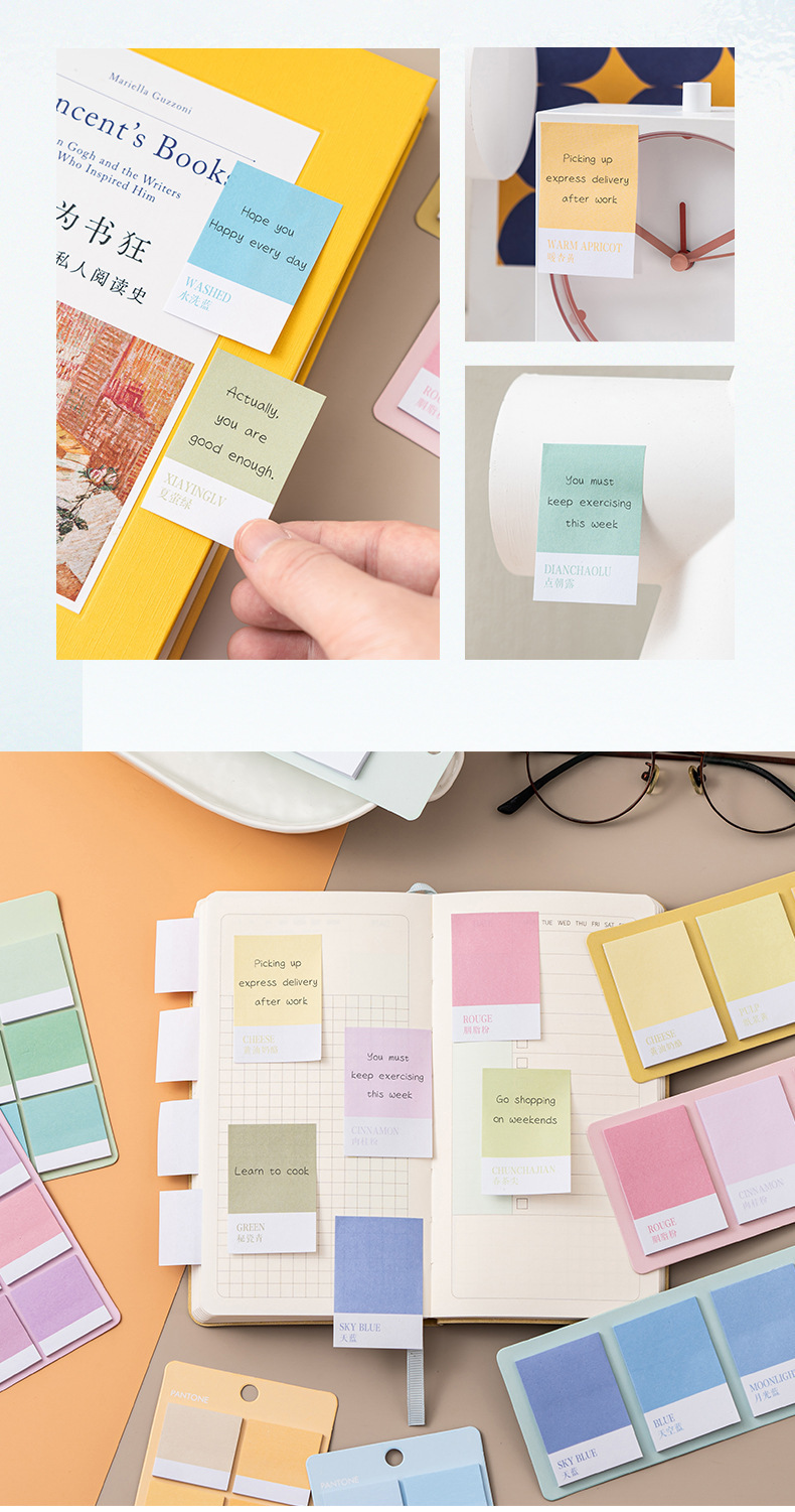 グラデーションカラーの付箋、メモ用紙、手元帳リスト、高見え、貼り付け可能な学生、インカラーノート