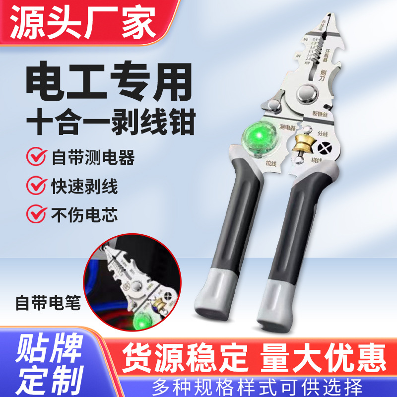 電気技師向けの新しい電気テストペン付き多機能ワイヤーストリッパー、ユニバーサルワイヤーストリッパー、大容量の巻線、大幅割引