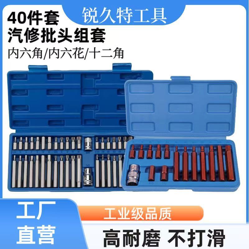 電動レンチ40点セット、梅花ビット一式、六角工具一式、六角ソケット一式、大型フライングビット