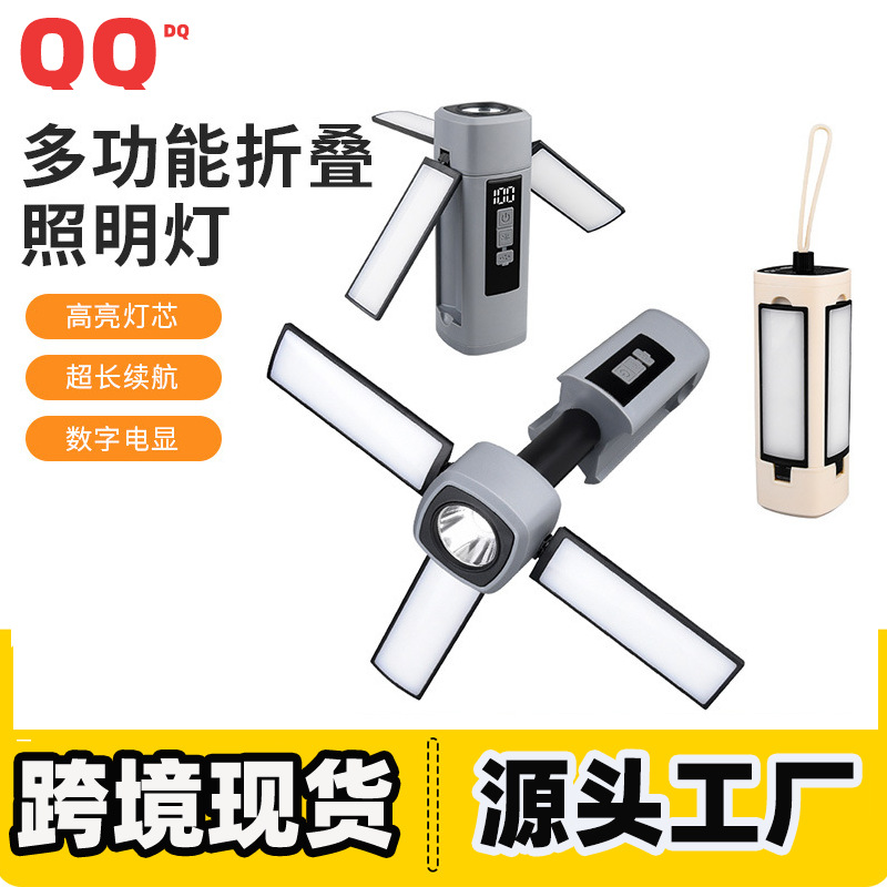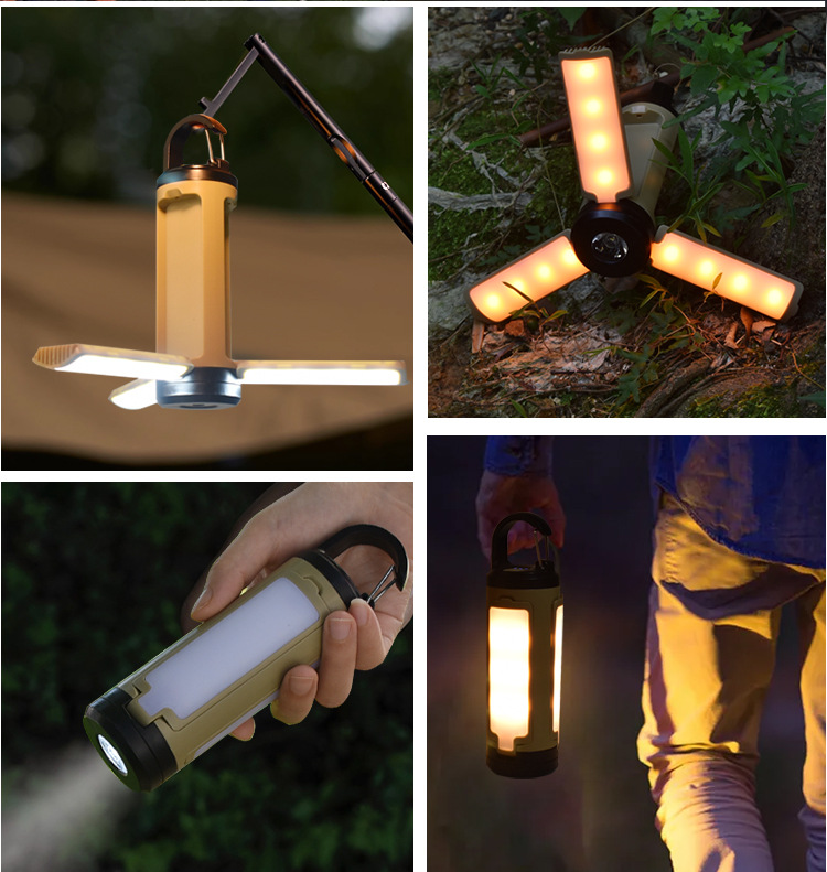 跨境新款多功能可折叠四叶三叶露营灯 户外野营带挂钩LED帐篷灯