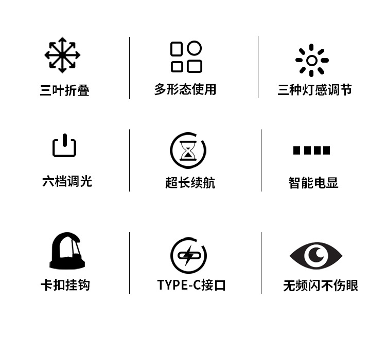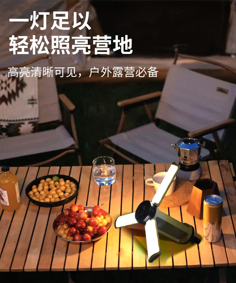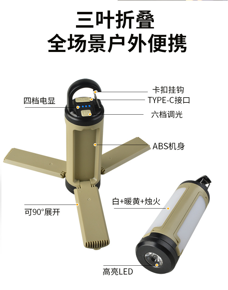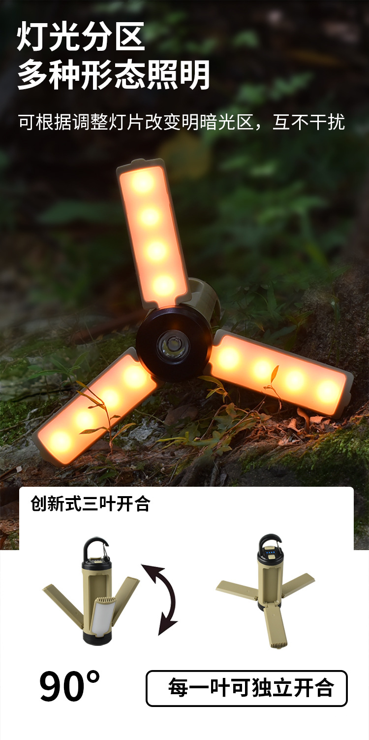 跨境新款户外LED露营灯TYPE充电三叶便带携挂钩多功能野营帐篷灯
