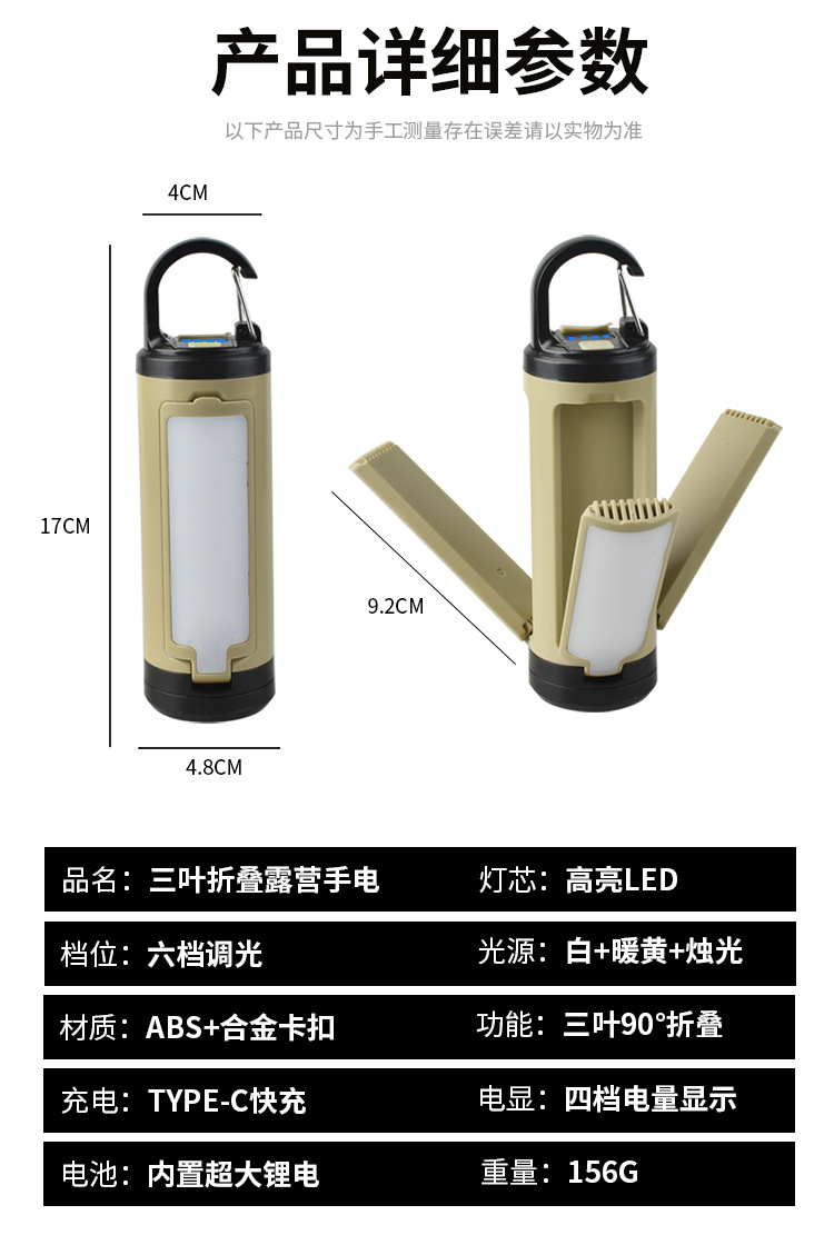 跨境户外LED灯三叶折叠露营灯TYPE充电便携挂钩多功能野营帐篷灯