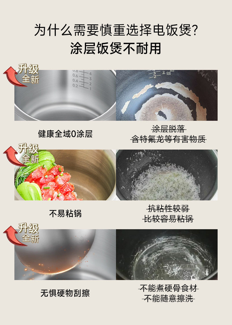 智能触屏电饭锅钢胆0涂层2-4人小型家用一锅多用米汤分离电饭煲