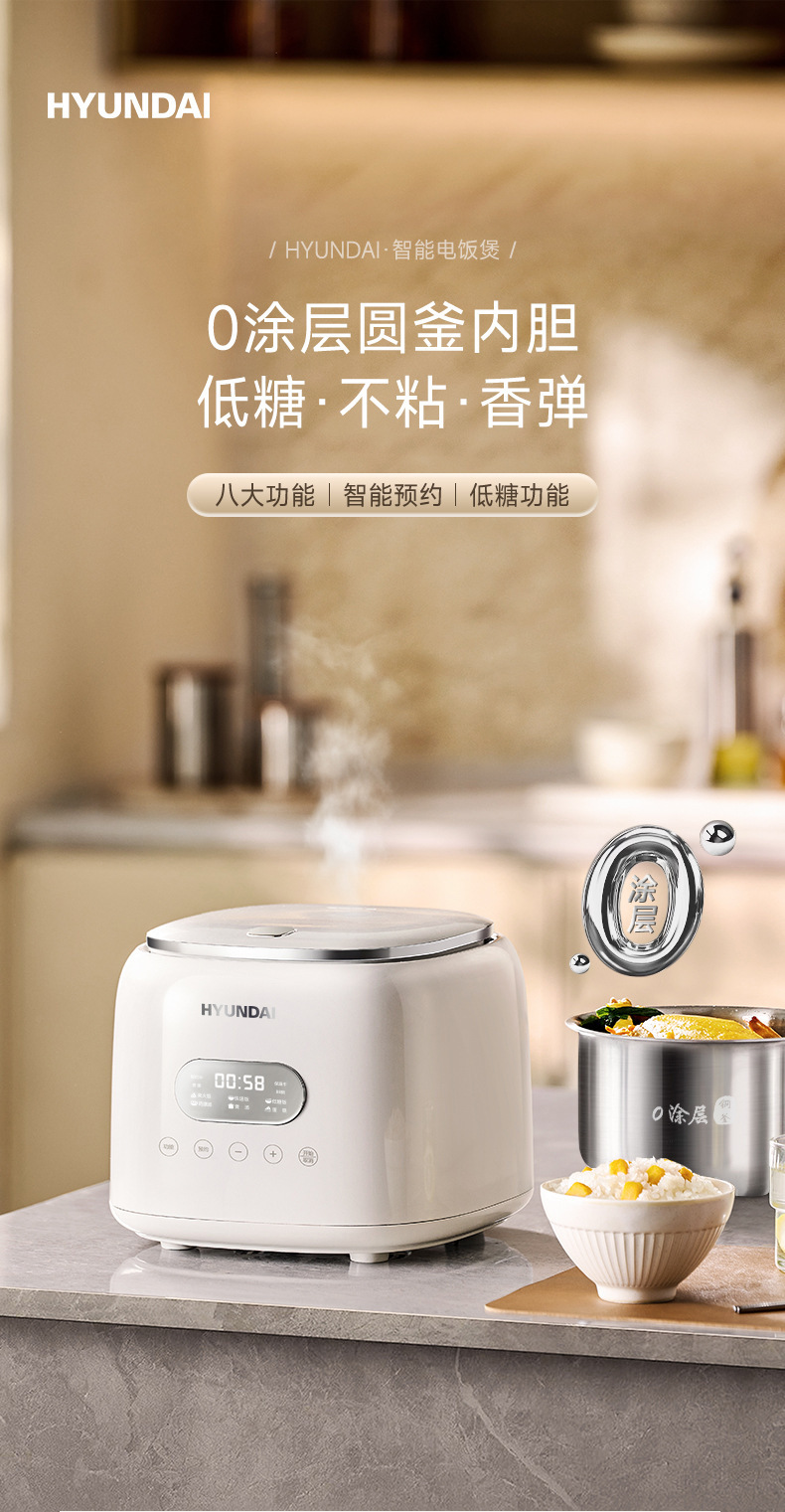 ゼムコン家庭用0コーティングチタン胆スマート炊饭器3L小型ミニ3-4人用多机能小型炊饭器