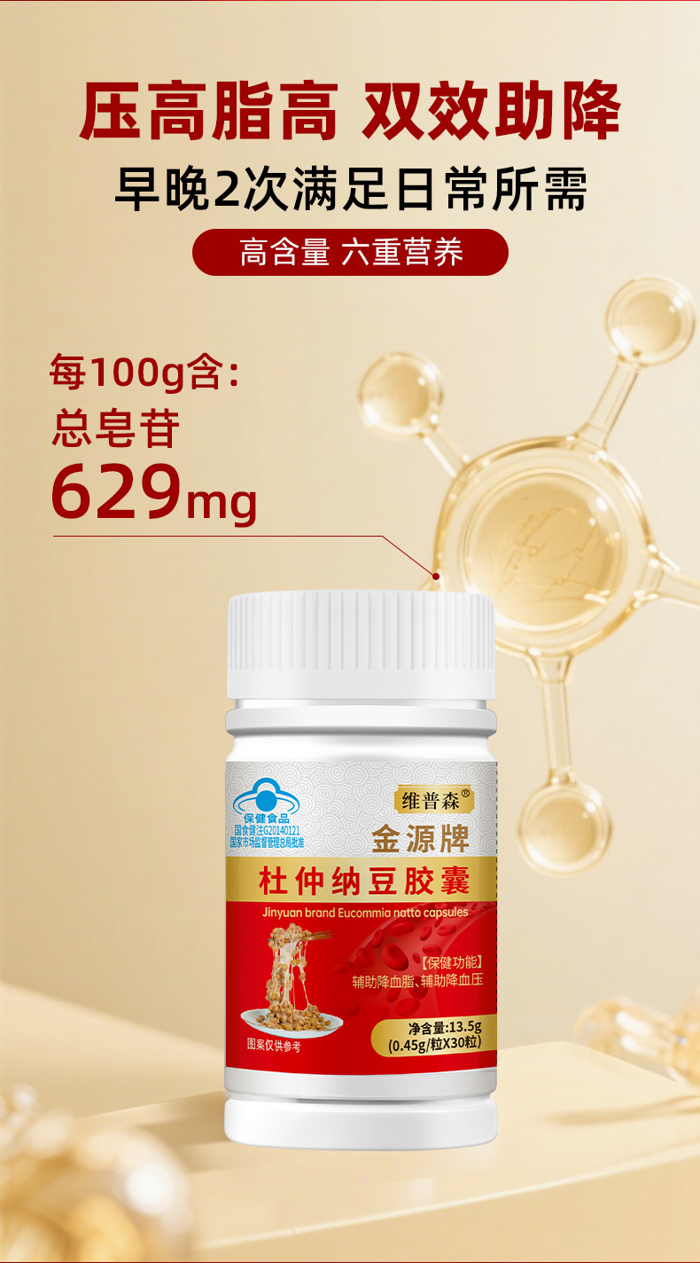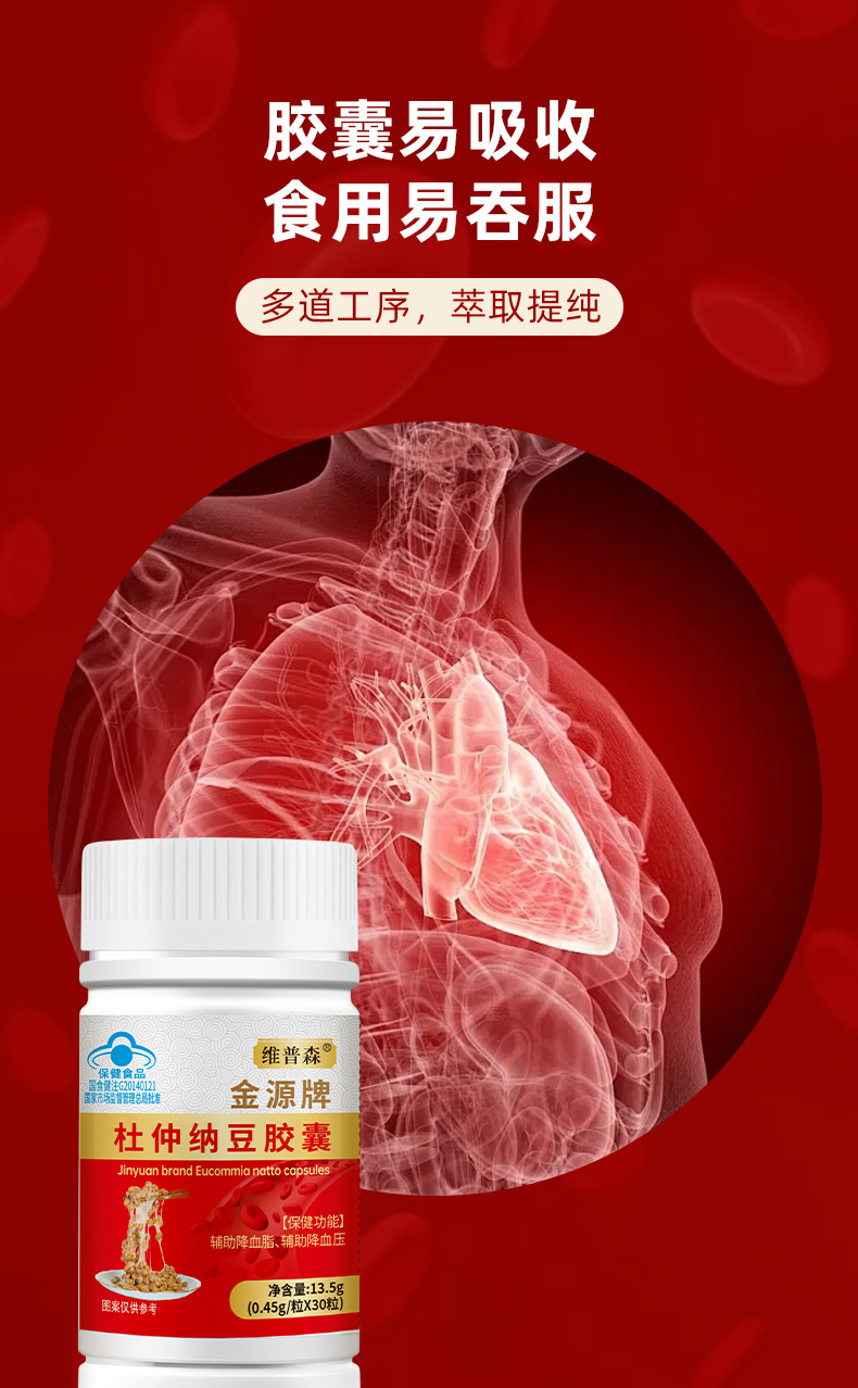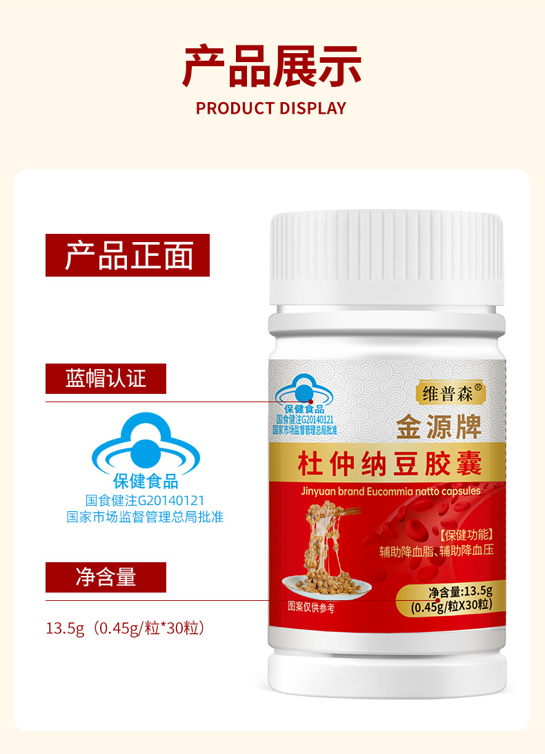 厂家现货杜仲纳豆胶囊辅助降血脂辅助降血压蓝帽保健食品批发代发