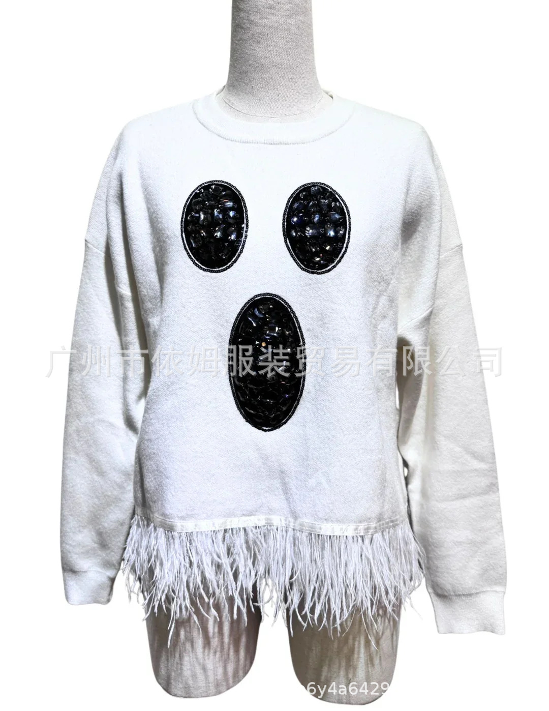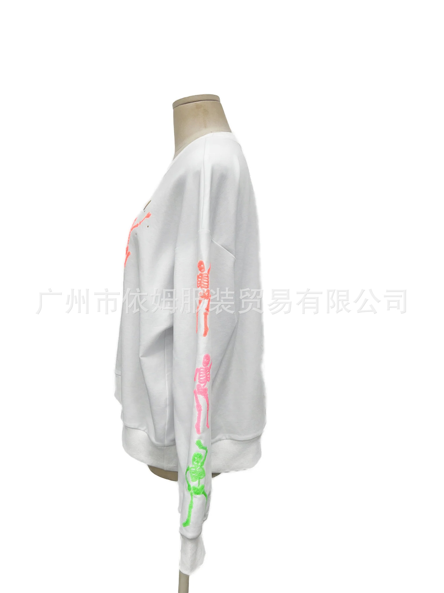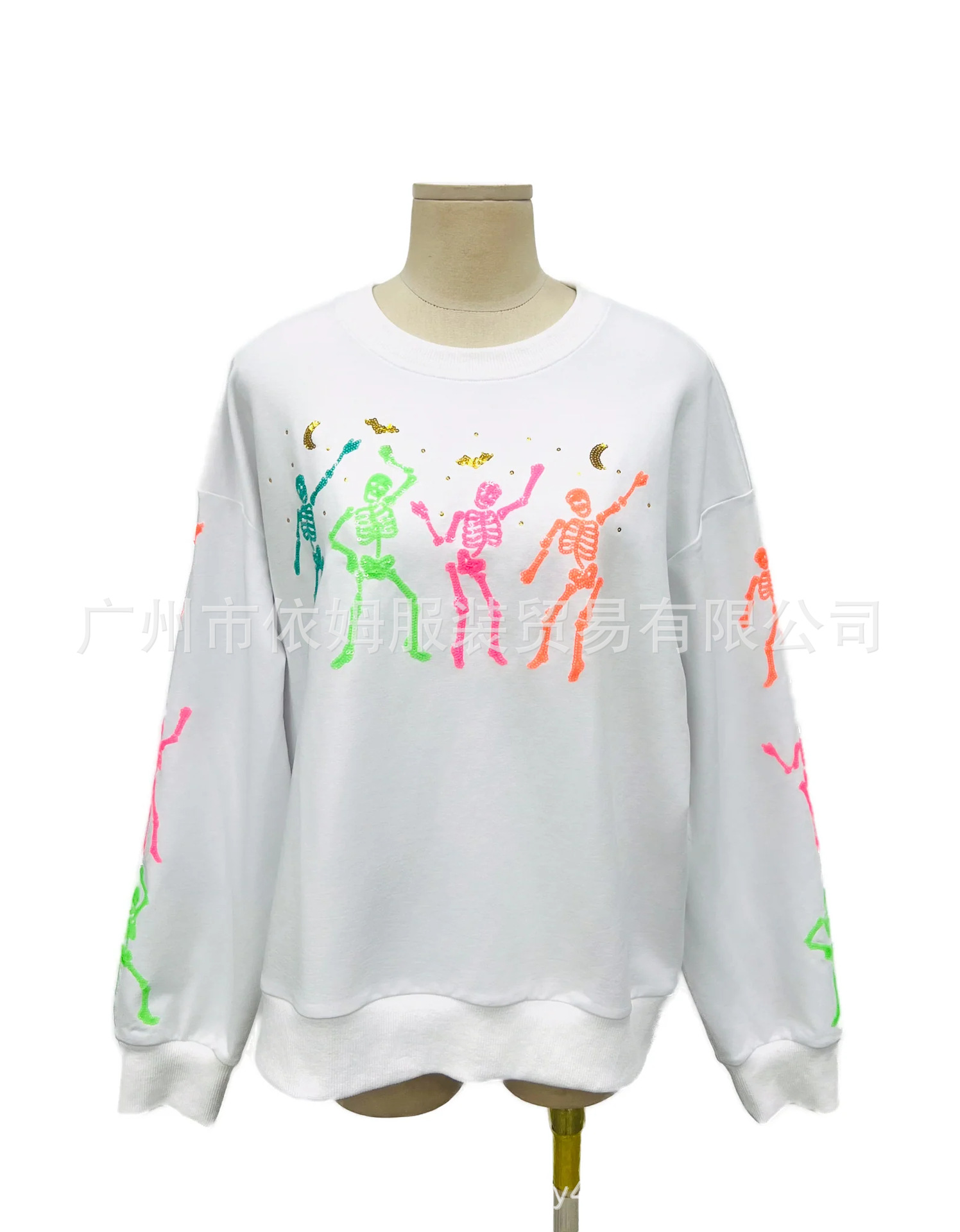 亚马逊25秋冬新款跨境欧美女装万圣节重工刺绣拼接套头长袖卫衣女