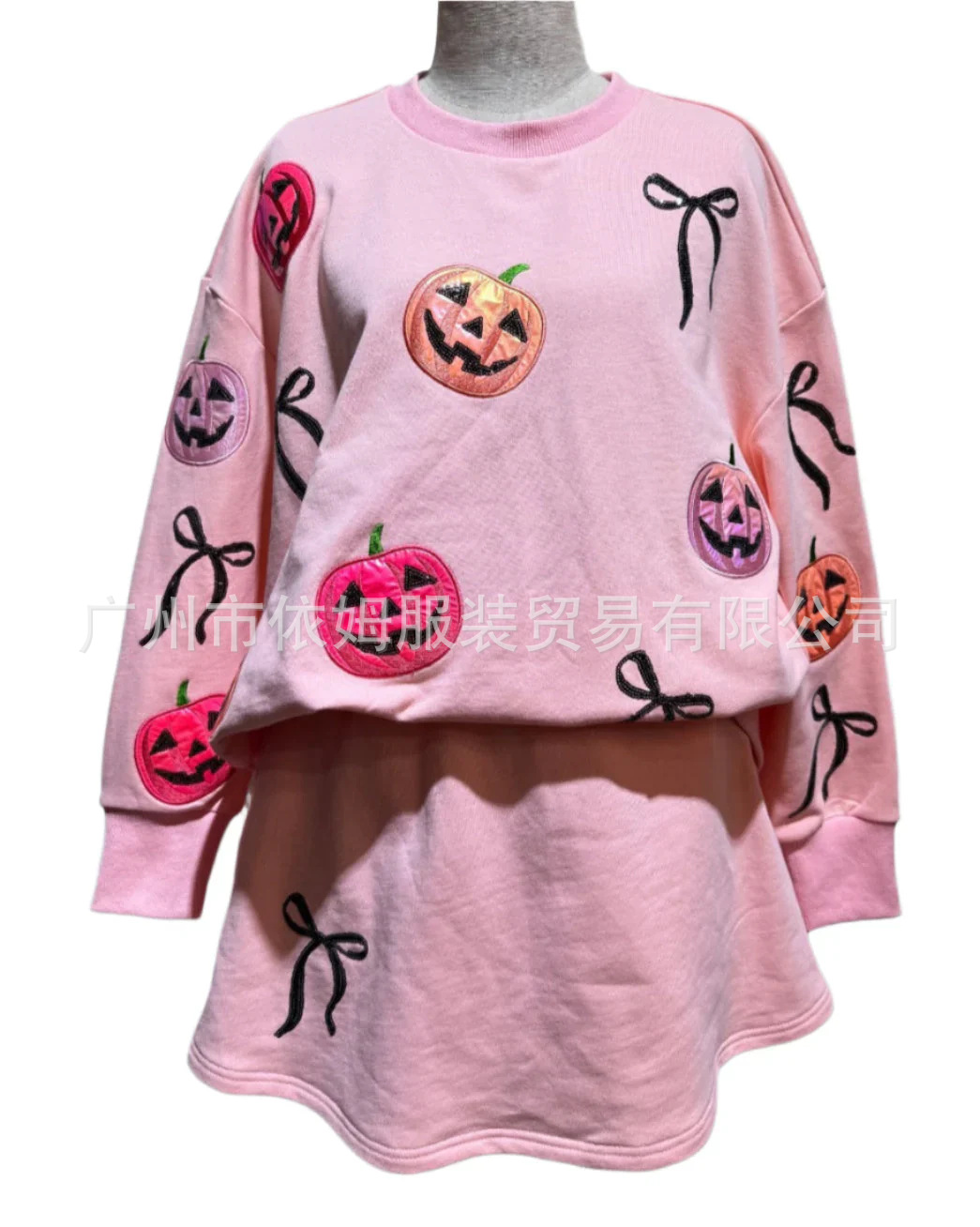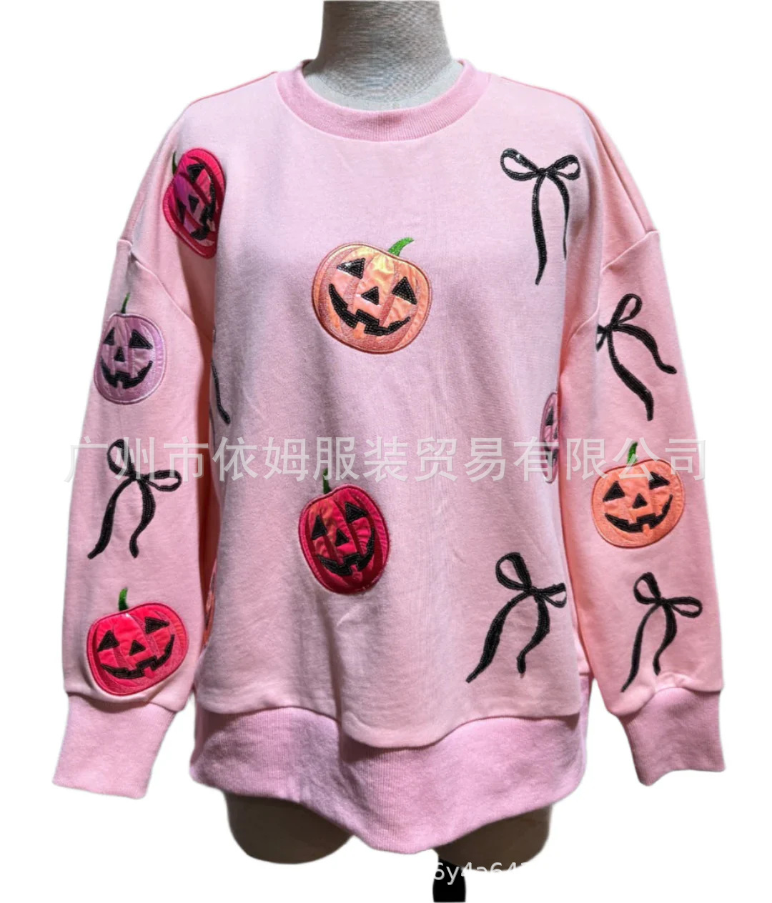 Amazon 25 秋冬新作クロスボーダーヨーロッパとアメリカの服ハロウィン刺繍ラウンドネックプルオーバー長袖スウェットシャツトップ女性用