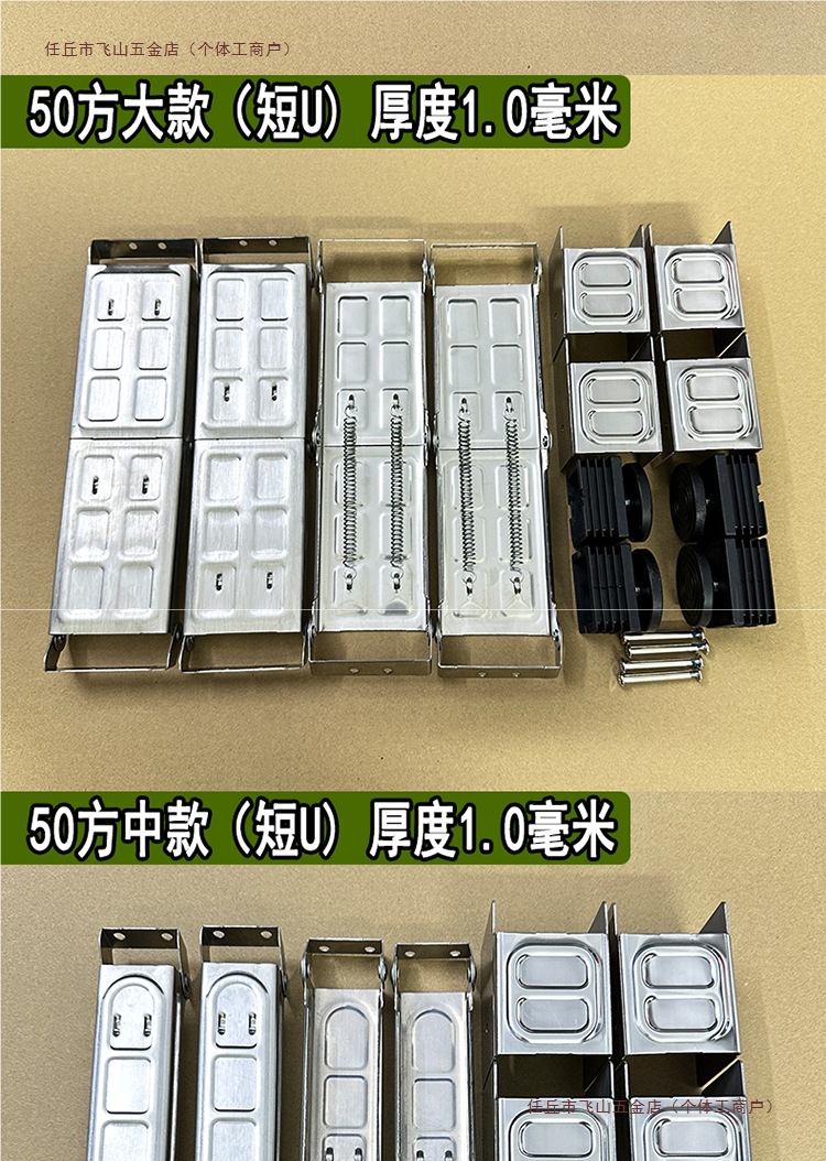 仕様 30角管小シングル引張バネ(長短U)厚さ0.75)ネジ+フットパッド付,30角管小二重引張バネ(長短U)厚さ0.75)ネジ+足パッド付,30角チューブ中型(長短U)厚さ0.8)ネジ+足パッド付き,30角チューブ中型(ショートU)厚さ1.0)ネジ+足付,30角チューブ中型(長短U)厚さ1.0)ネジ+足パッド付,38角チューブ中型(ショートU)厚さ0.8)ネジ+足付,38角チューブ中型(長短U)厚さ0.8)ネジ+足パッド付き,38角チューブ中型(ショートU)厚さ1.0)ネジ+フットパッド付き,38角チューブ中型(長短U)厚さ1.0)ネジ+足付,50角チューブ中型(ショートU)厚さ1.0)ネジ+足付,38角チューブ大(ショートU)厚さ1.0)ネジ+足付,38角チューブ大(長短U)厚さ1.0)ネジ+足付,50角チューブ大(ショートU)厚さ1.0)ネジ+足付属,38角チューブ特大(ショートU)厚さ1.2)ネジ+足付,38角チューブ特大モデル(長短U)厚さ1.2)ネジ+足付,50角チューブ特大(ショートU)厚さ1.2)ネジ+足付