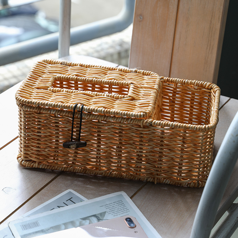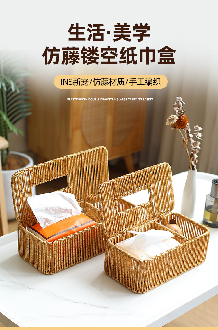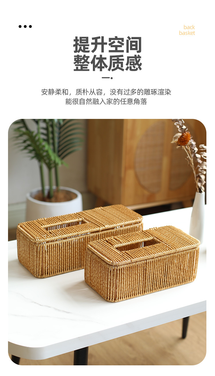 ティッシュボックス家庭用紙箱非わら模造籐リビングルームコーヒーテーブル多機能収納ボックスリモコン収納クリエイティブ