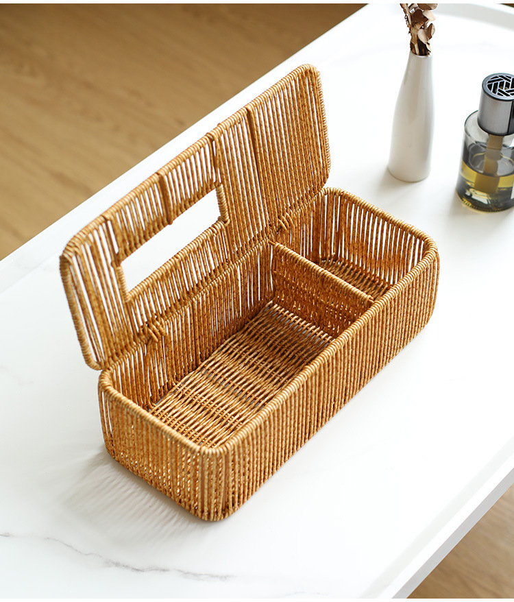 引き出し箱家庭用リビングレストランアイデア手作り籐軽量多機能リモコン収納ティッシュケース