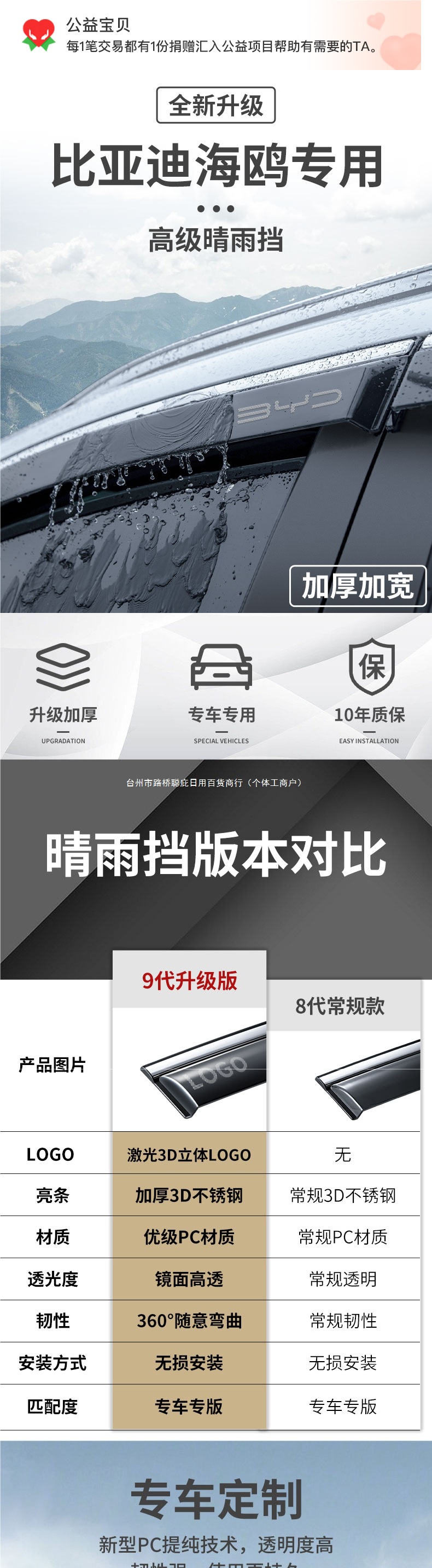 BYD シーガル車の改造アクセサリー、晴雨兼用雨よけ、窓雨眉、雨よけ、Fu Ying に適しています。
