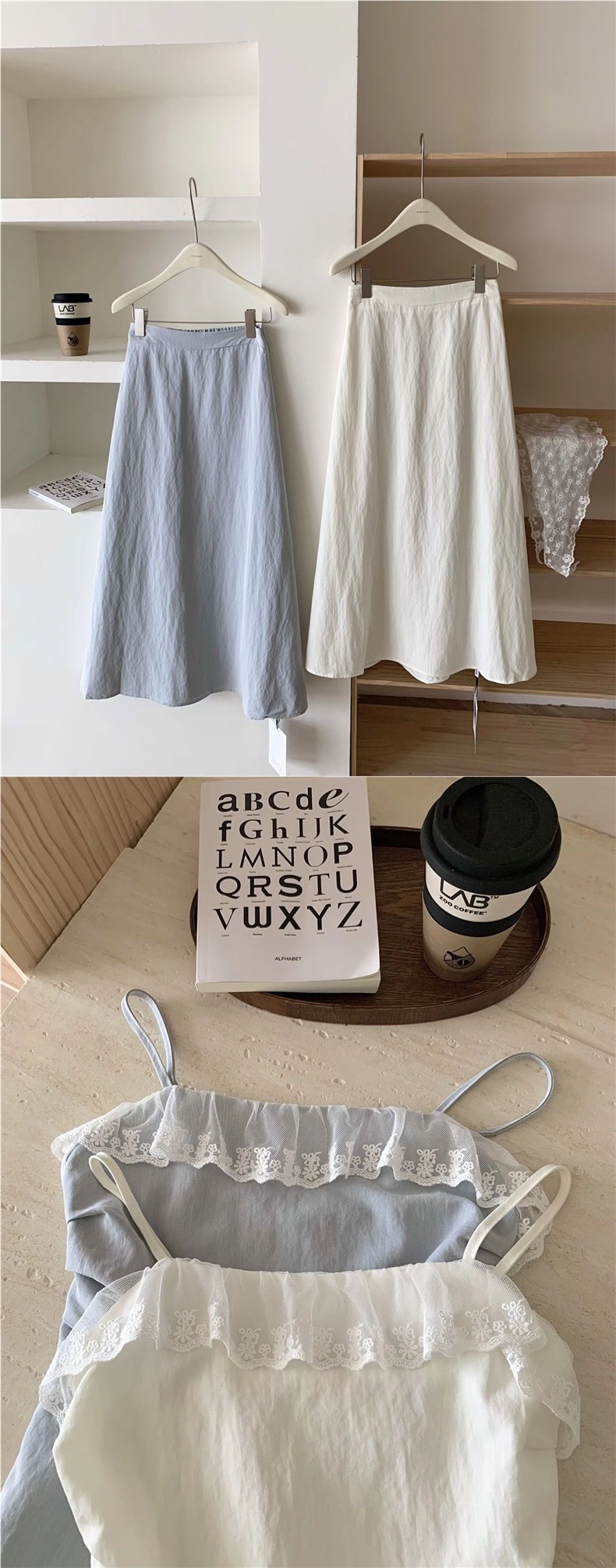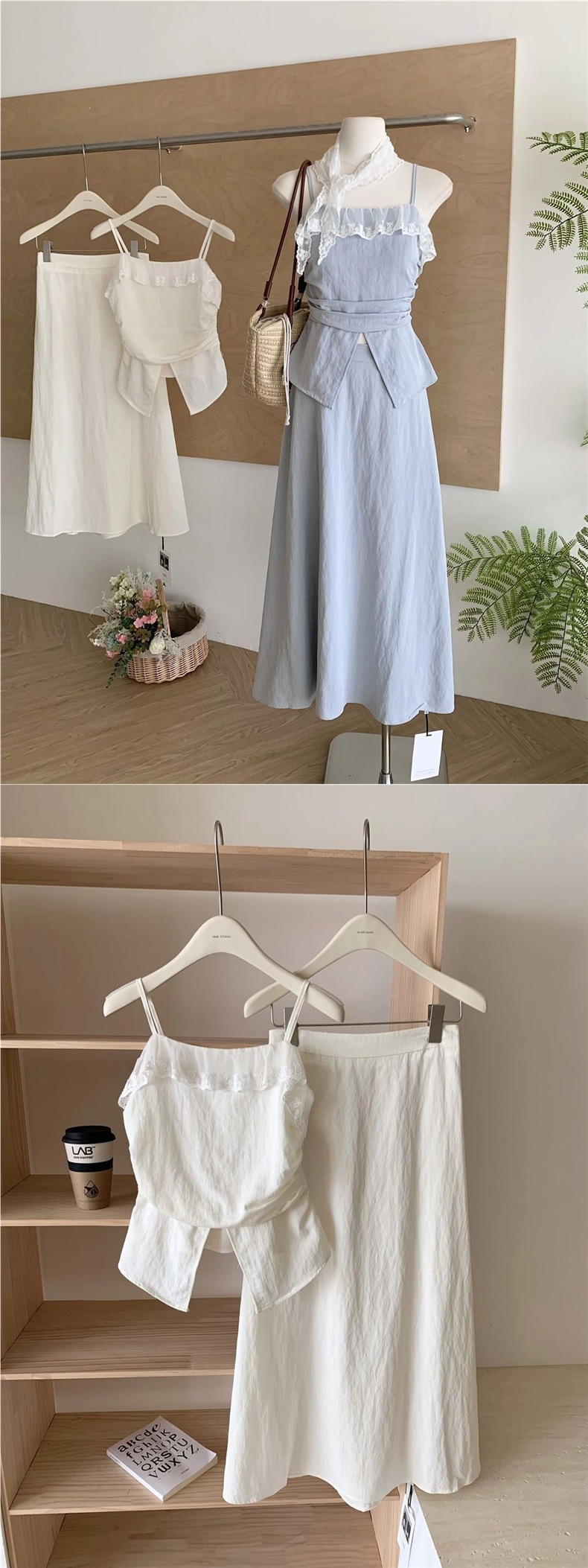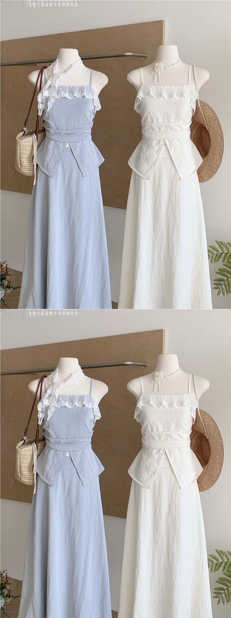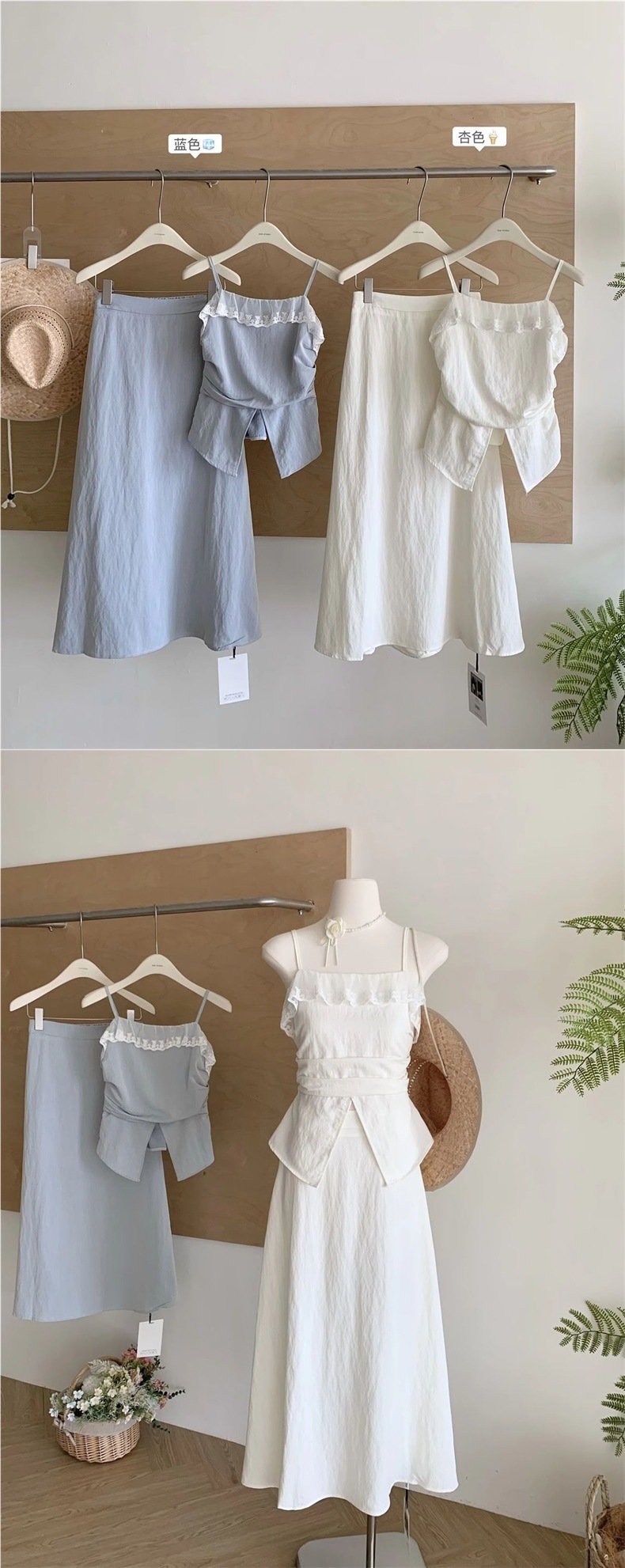 ブルーキャミソールトップ+ロングスカート【高品質】,アプリコットサスペンダートップ+ロングスカート【高品質】,アプリコットロングスカート【高品質】