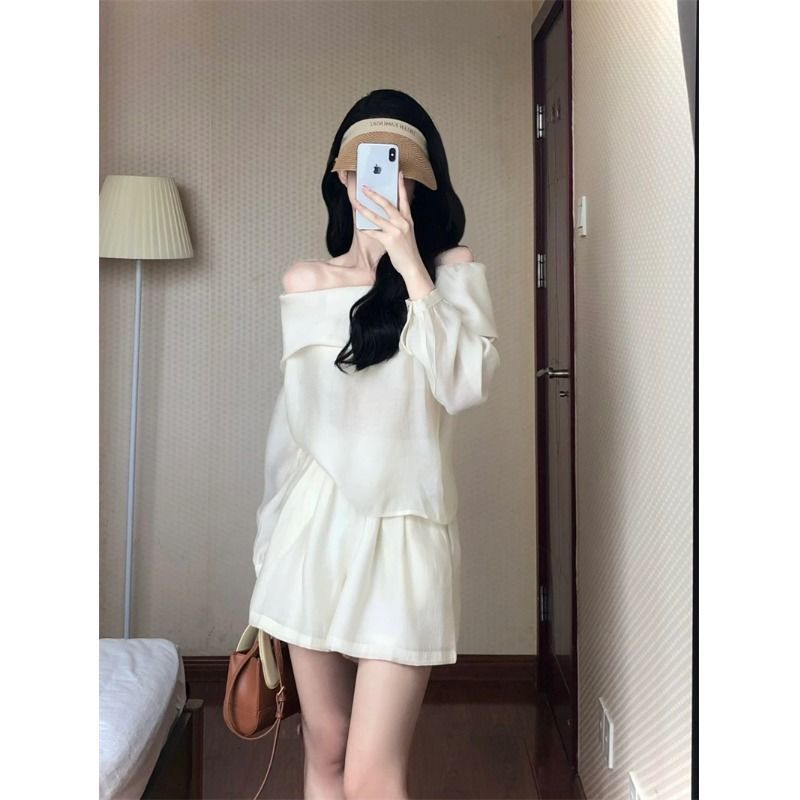 Pure Desire アプリコット ジェントルスタイル ファッションスーツ レディース 2025年春新作 ワンラインカラーシャツ ワイドレッグショーツ 2点セット