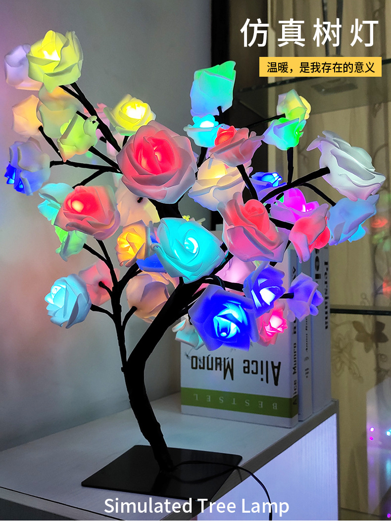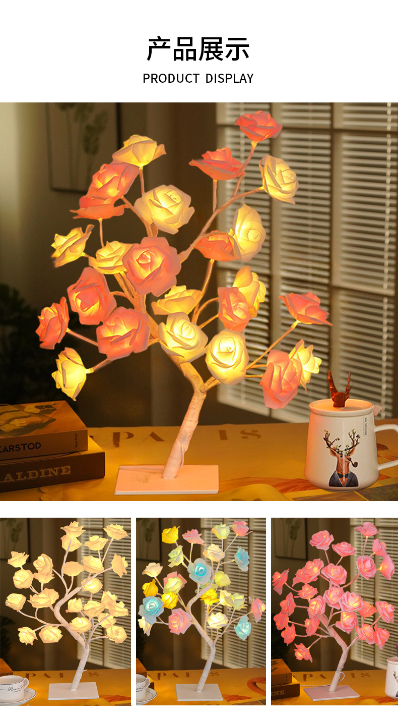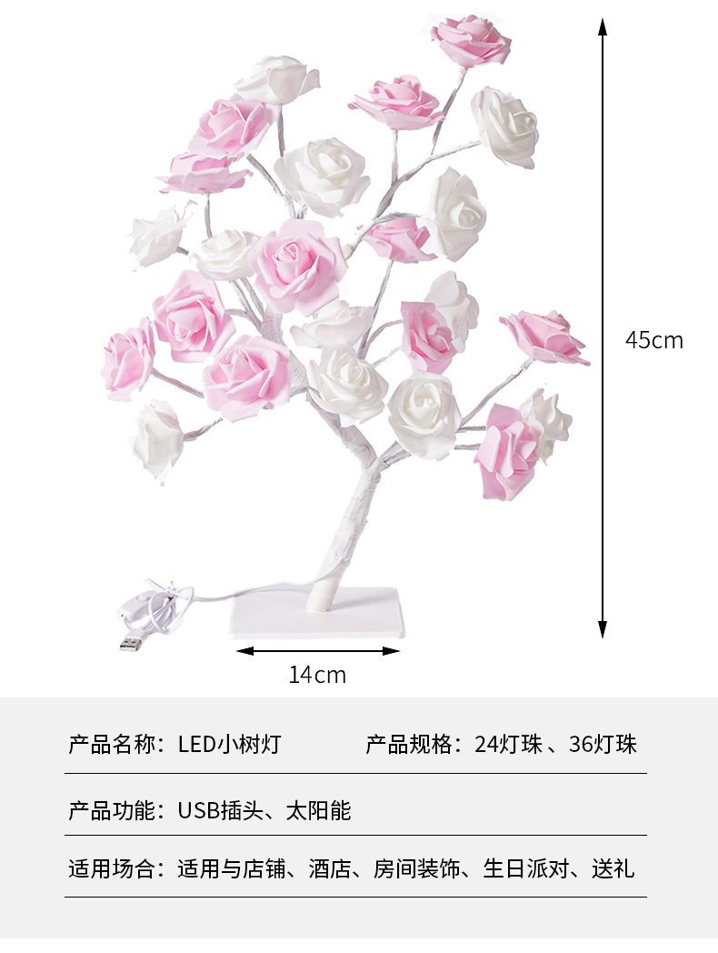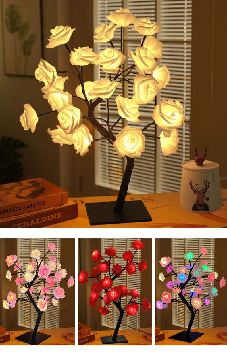 クロスボーダー 24 ライト LED シミュレーションローズツリーライト USB スイッチ取り外し可能なプラスチックベース装飾ナイトライト卸売