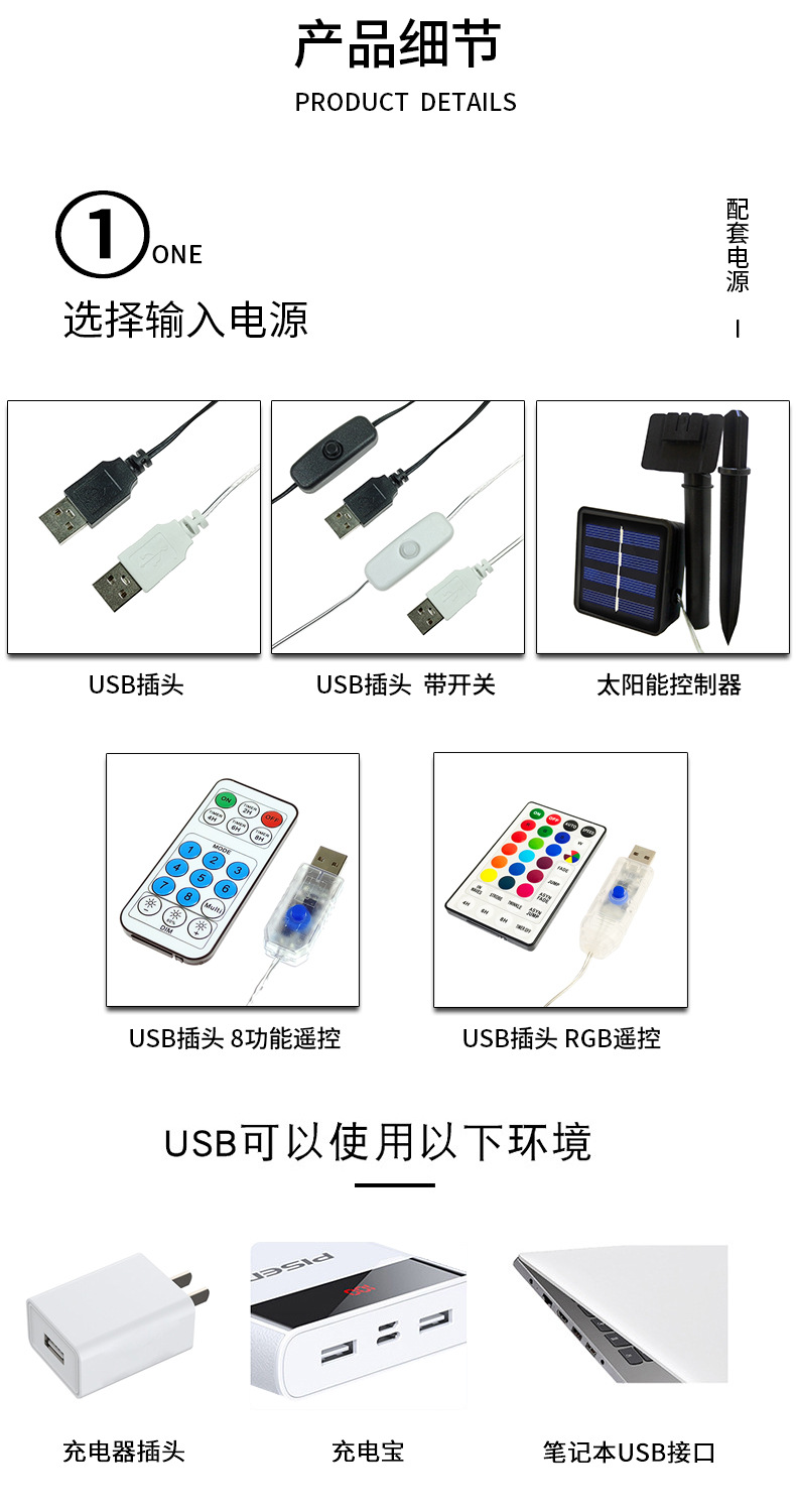 功率 USB 常亮款 24灯,USB 带开关 24灯,USB 红外遥控 24灯,USB 红外遥控 36灯,USB 常亮款 36灯,USB 带开关 36灯,USB RGB遥控 36灯