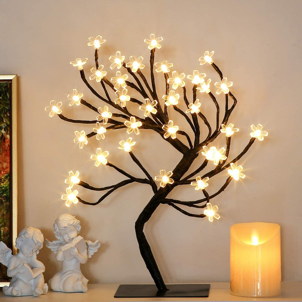 北欧スタイルのツリーライト黒ベースプレート LED 小枝ライトシミュレーションツリーライトストリングローズカエデの葉ツリーライト装飾ライト