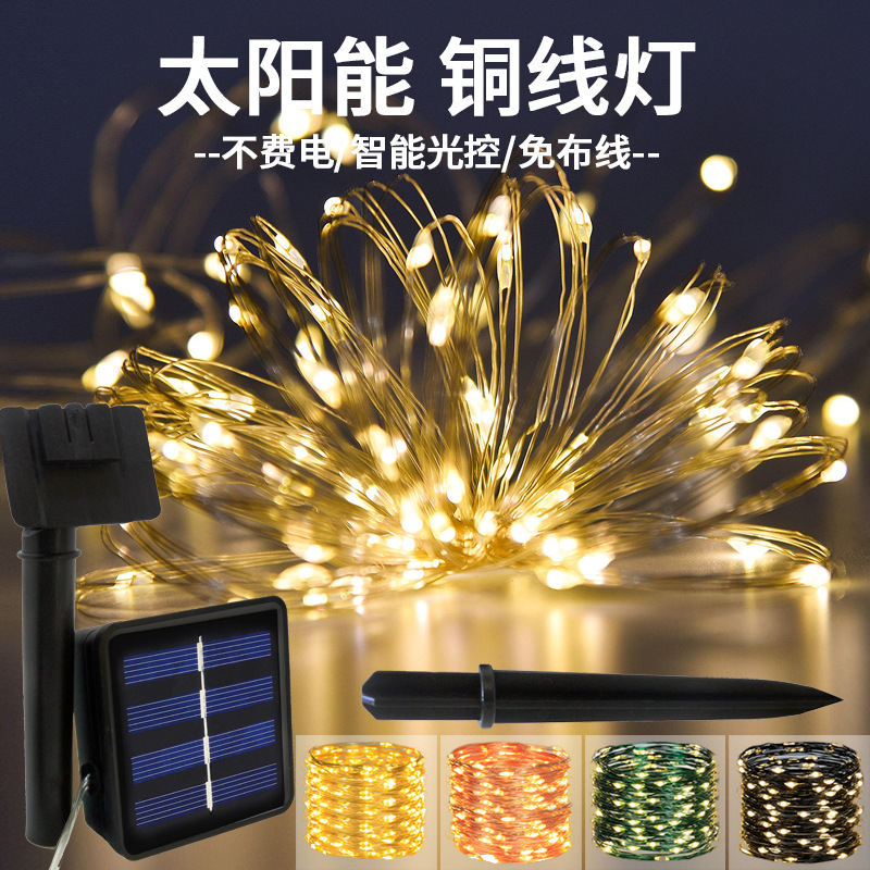 国境を越えたLEDソーラー銅線ライトストリング 屋外庭園防水装飾ライト ホリデー雰囲気ライト 銅線ライトテープ