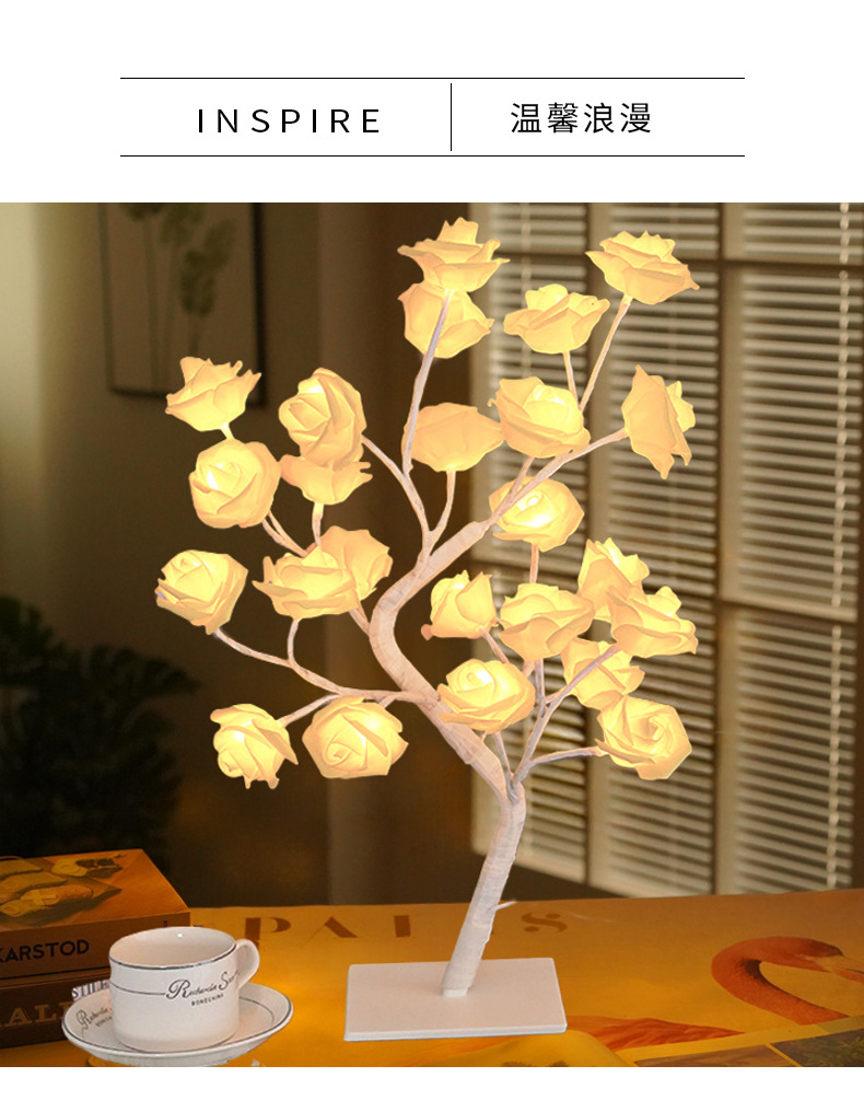 LED仿真玫瑰花树灯房间卧室床头小夜灯USB遥控氛围灯生日礼物
