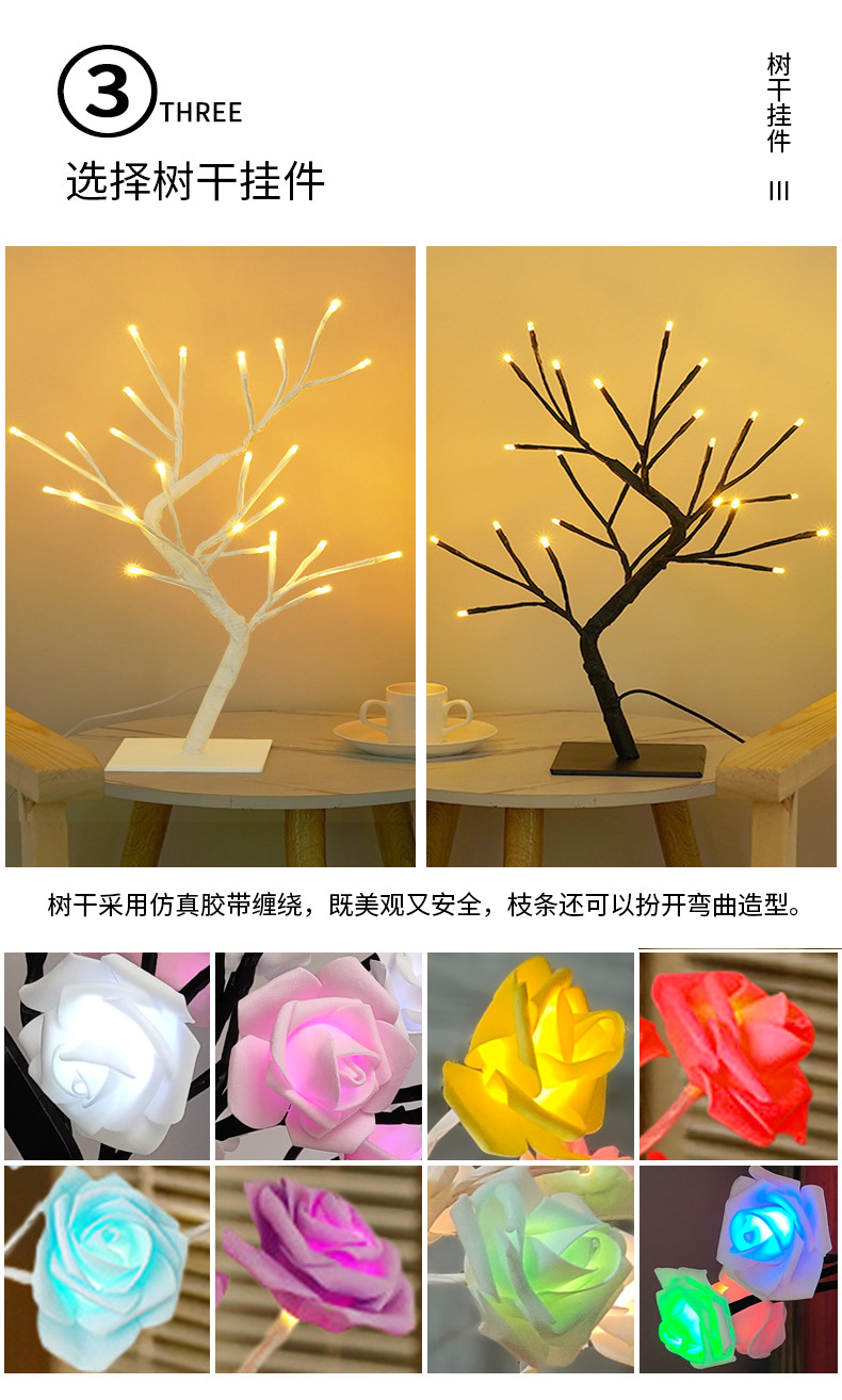 クロスボーダー起爆カラーランプ取り外し可能なプラスチックベースUSBスイッチLEDシミュレーションバラの木のランプ装飾ライト