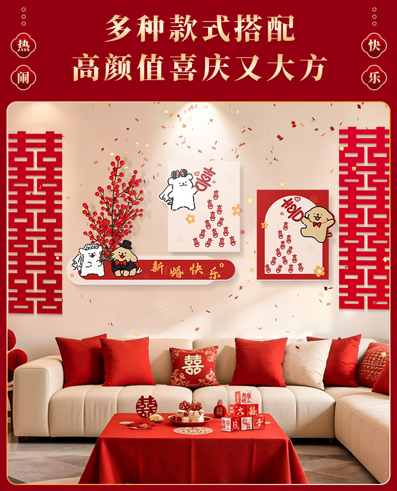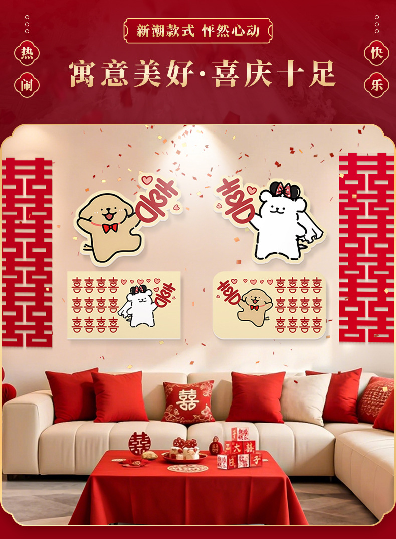 线条小狗婚房布置套装客厅沙发背景墙装饰结婚礼新房卧室喜字