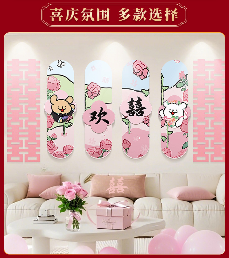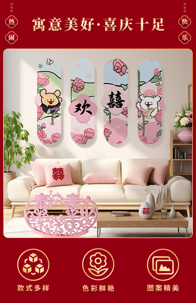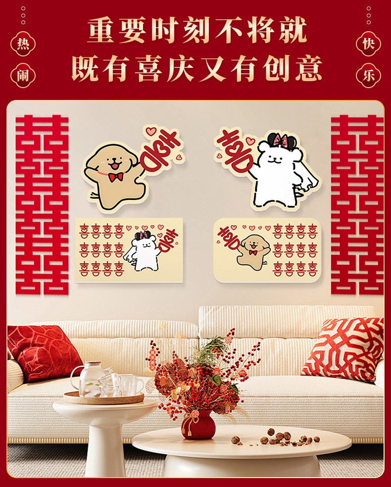 线条小狗婚房布置套装客厅沙发背景墙装饰结婚礼新房卧室喜字kt板