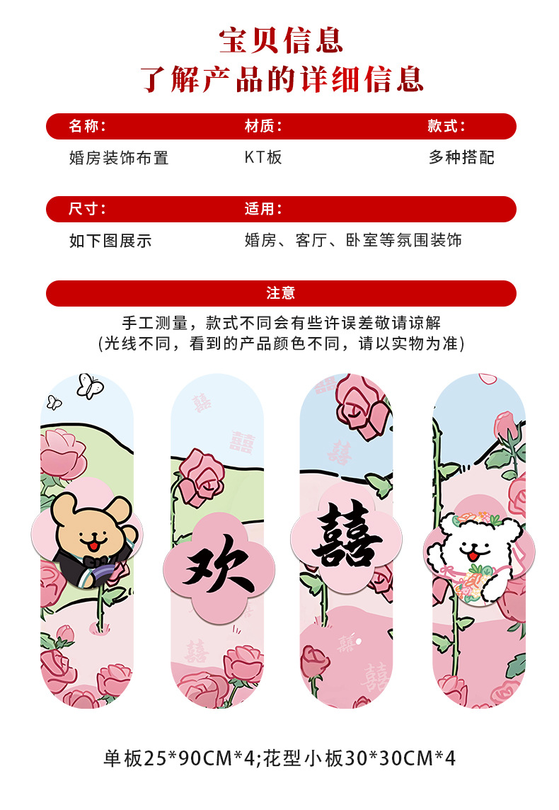 婚房布置套装客厅结婚装饰卧室床头喜字板KT板男女方沙发背景墙