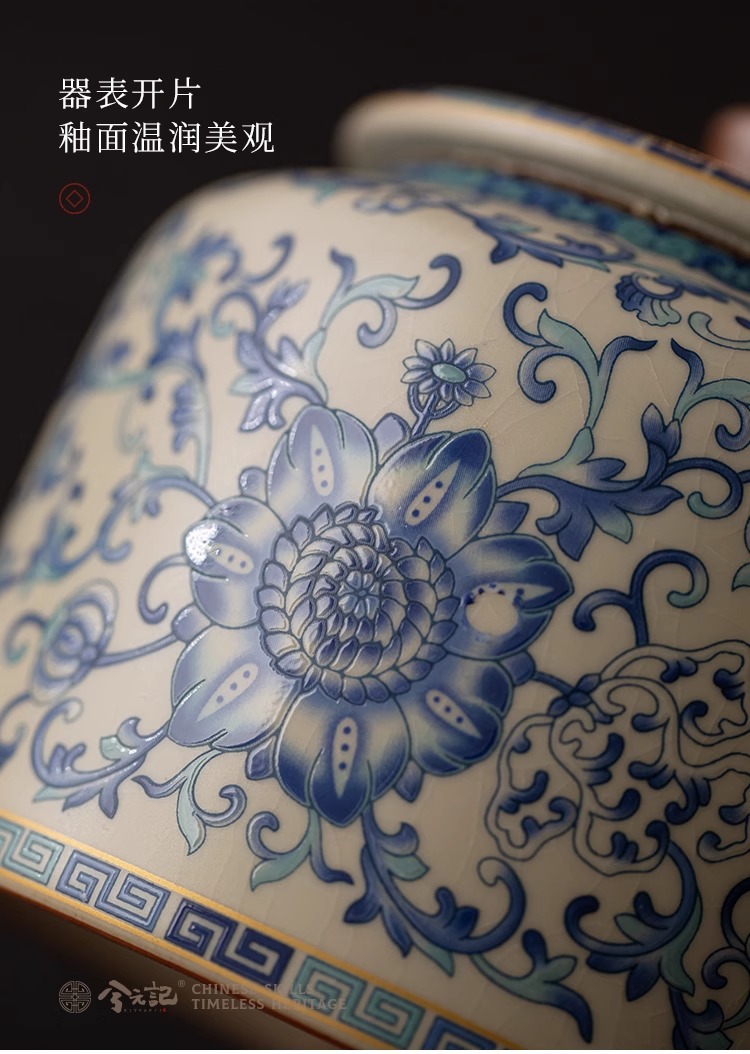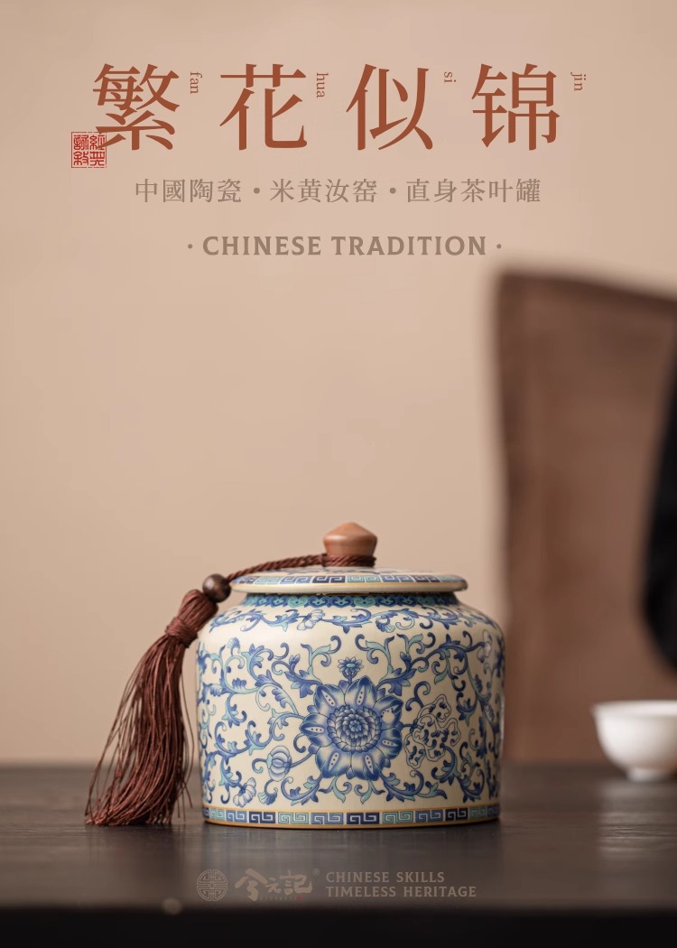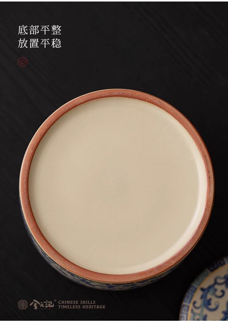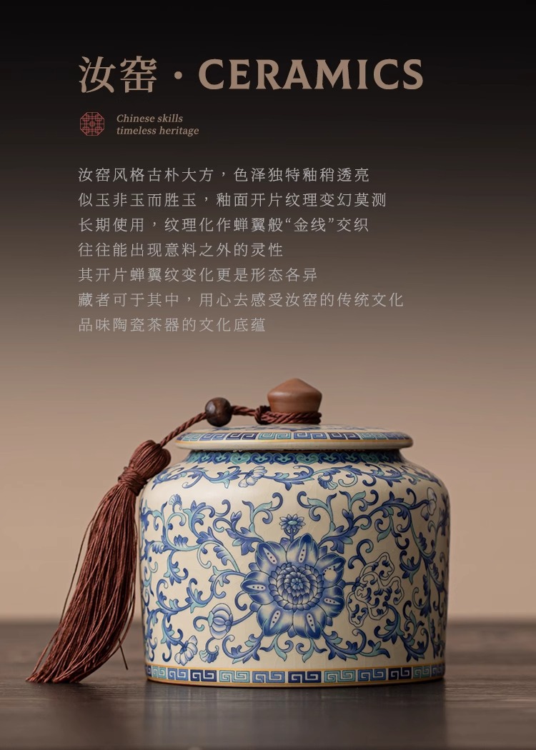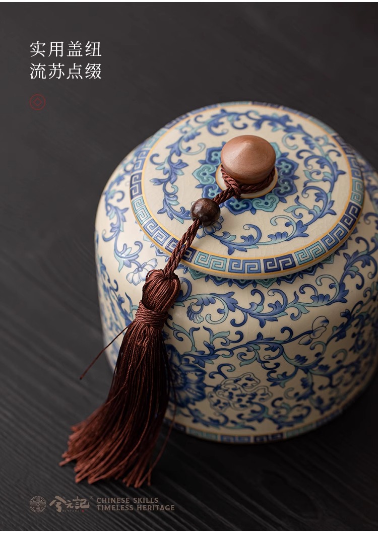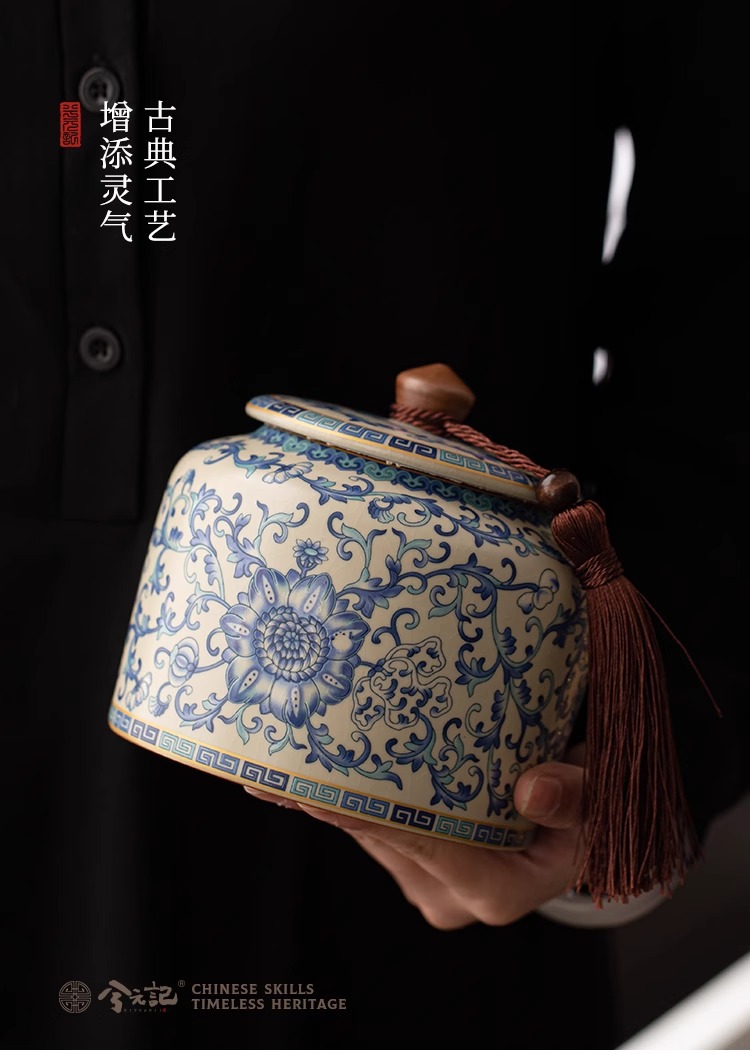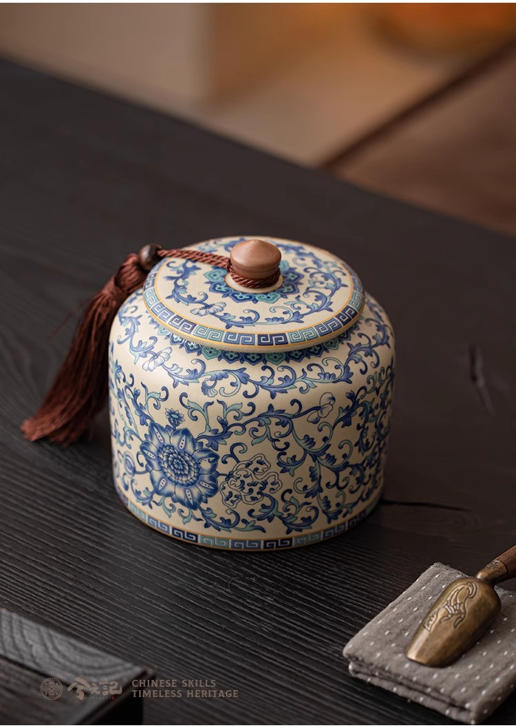 青花汝窯陶磁器茶葉缶逸品高級緑茶白茶プーアル茶防湿缶中国式密封貯蔵タンク