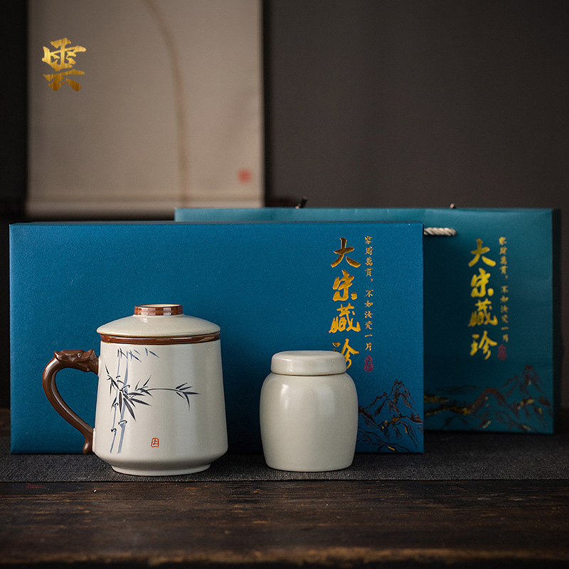 汝窯オフィスカップ茶水分離泡カップ手描き苗字大容量セラミックカップマグカップフィルター