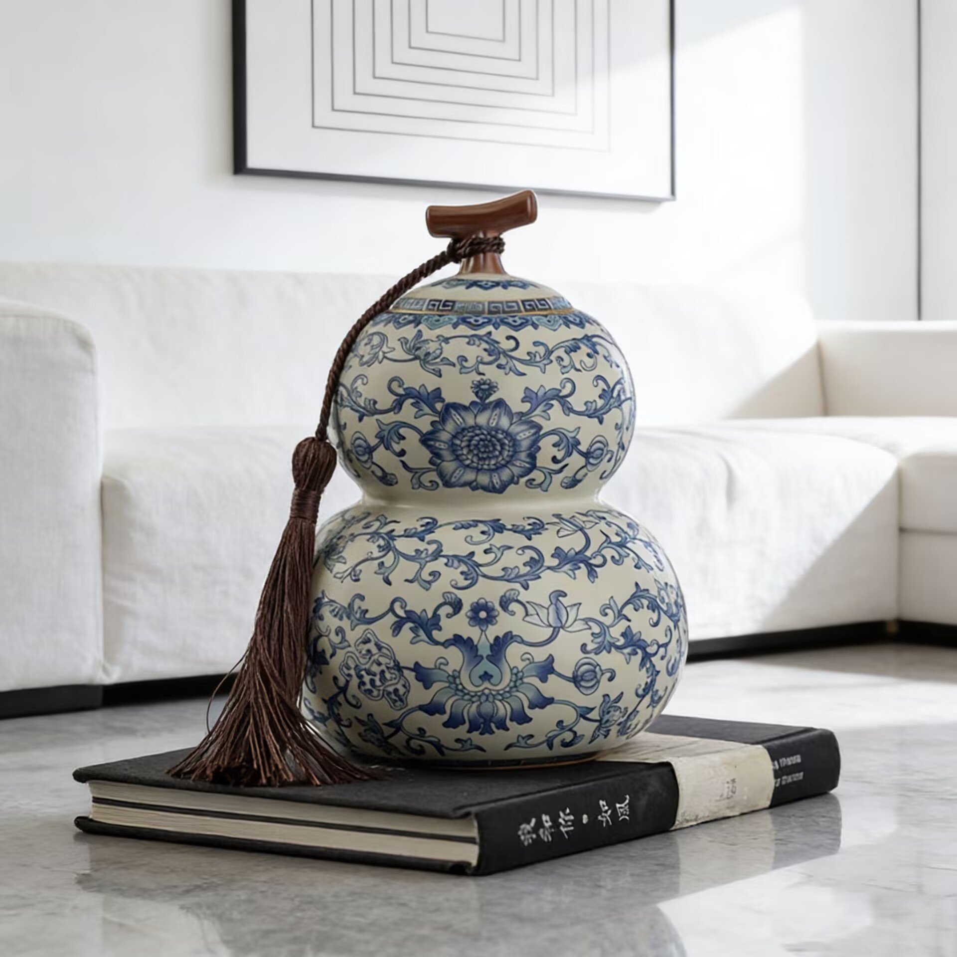 青花汝窑茶叶罐子大号葫芦陶瓷罐密封罐葫芦中式覆古储存茶罐高档