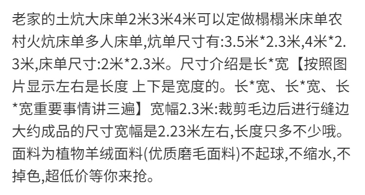 尺寸规格 3米*2.3米 炕单,收藏关注优先发货,3.5米*2.3米 炕单,4米*2.3米 炕单,4.5米*2.3米 炕单,5米*2.3米 炕单