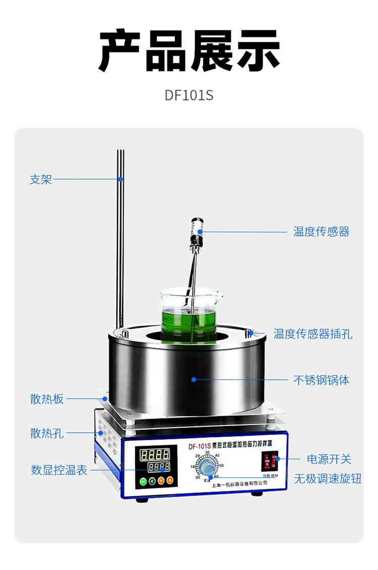 上海 Yikai 供給 DF101S 磁気スターラーデジタルディスプレイ多機能ミキサー集熱磁気スターラー