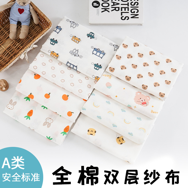 メーカーA級純綿二重ガーゼ、綿100%二重クレープ、40番手A級ベビー用よだれかけ、パジャマ、ガーゼ生地