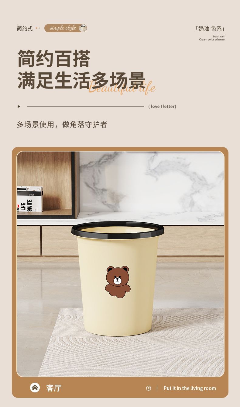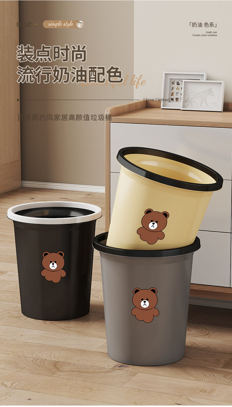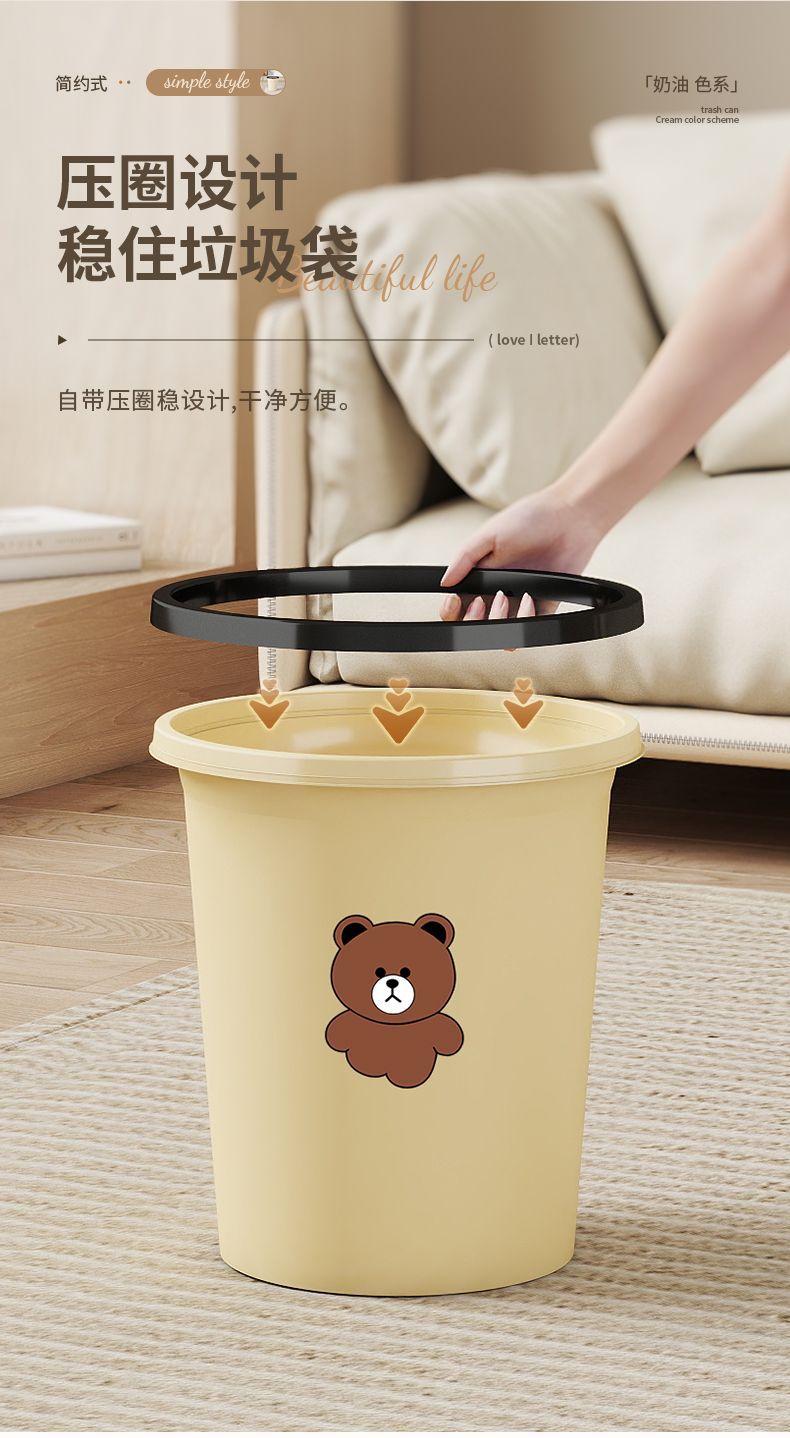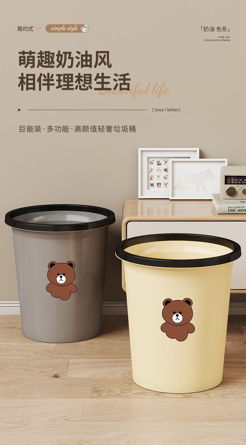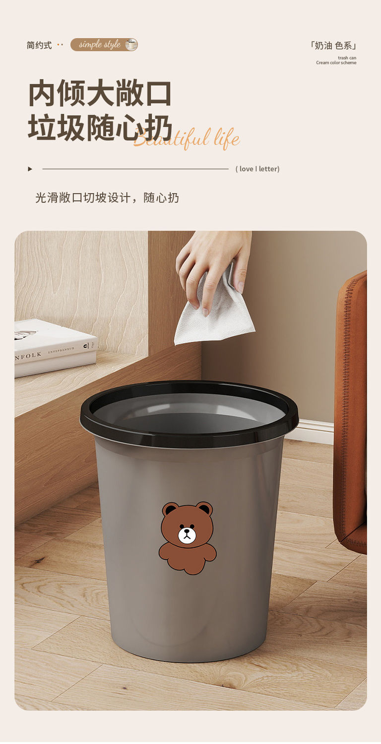 ゴミ箱 家庭用 リビングルーム キッチン バスルーム 大容量 寝室 蓋なしトイレ 高価値ペーパーバスケット 圧力リング Lサイズ