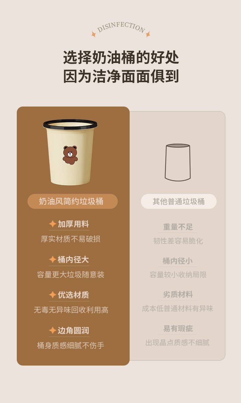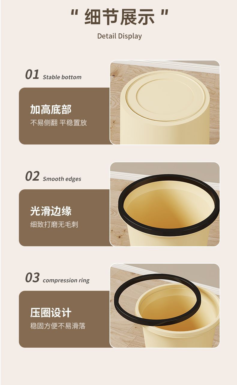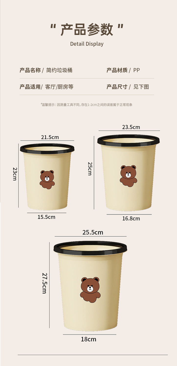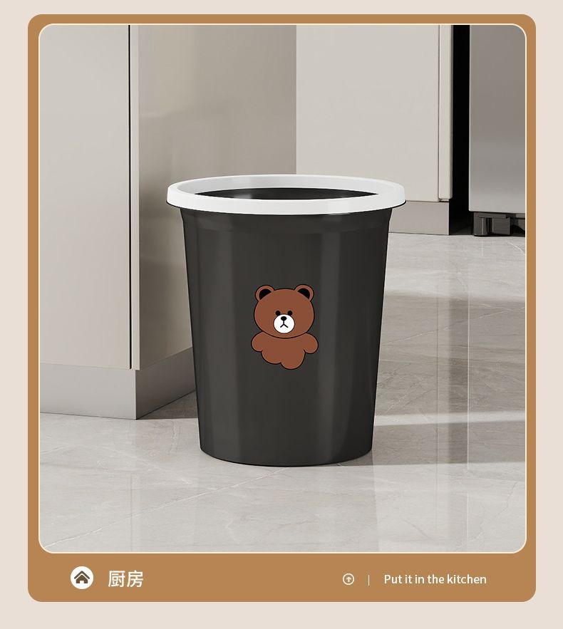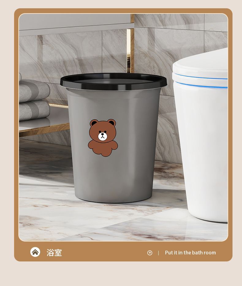 ゴミ箱 家庭用 リビングルーム キッチン バスルーム 大容量 寝室 蓋なしトイレ 高価値ペーパーバスケット 圧力リング Lサイズ