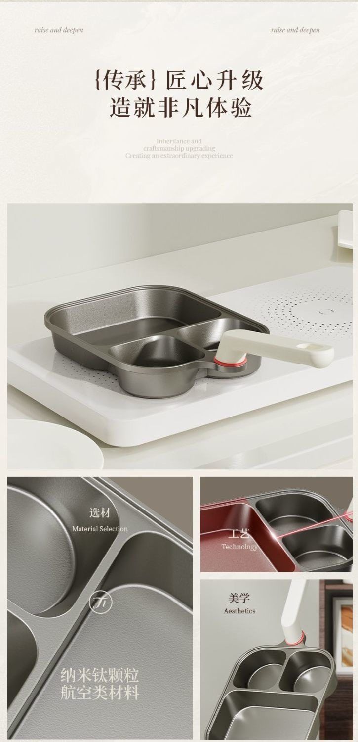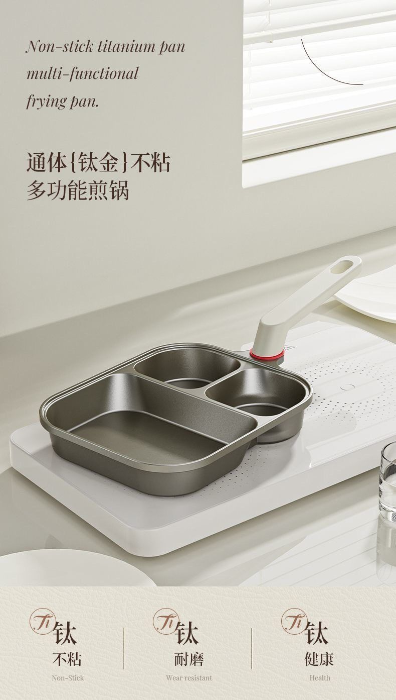 【通体・チタン金】三合一フライパン朝食鍋は鍋にくっつかない。