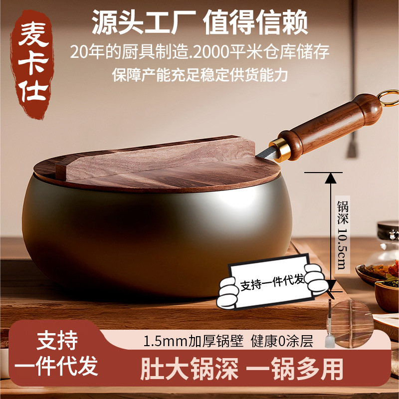 軽量小型中華鍋、セラミックノンスティックパン、コーティングされていない油煙の少ないフライパン、厚みのあるフライパン、コンロを選ばない中華鍋