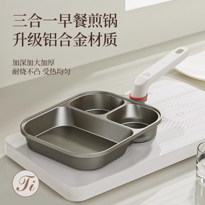 新款三合一钛陶瓷早餐锅铝合金不粘锅煎蛋汉堡锅加厚煎锅跨境批发