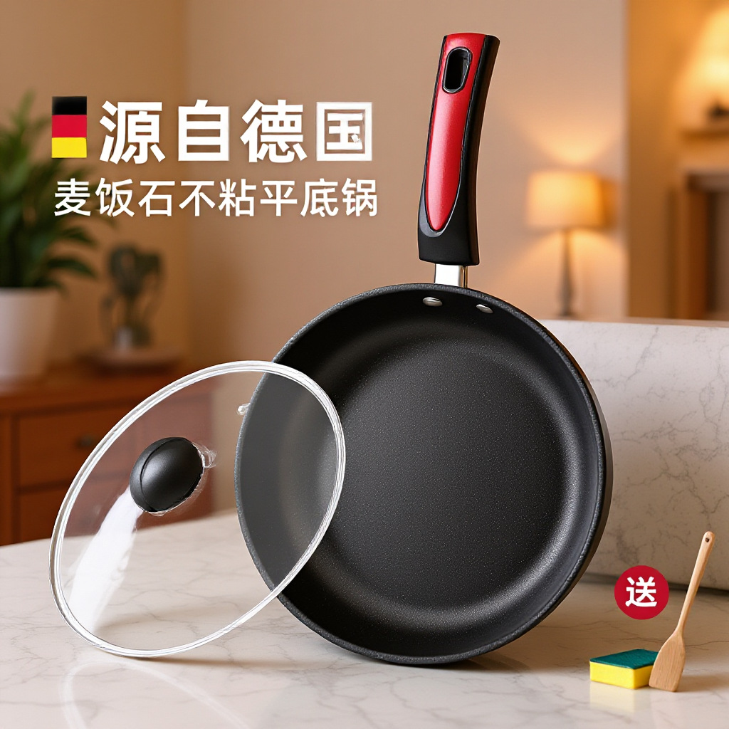 マカシ麦飯石家庭用ノンスティックフライパン、油煙なし、ガスコンロ・電磁調理器対応、メーカー卸売鉄鍋