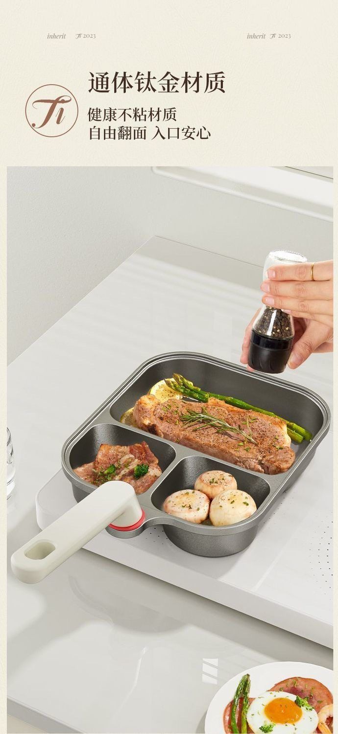 严选艺雅璐【盖子款·通体钛金】三合一煎锅早餐锅平底不粘锅煎蛋