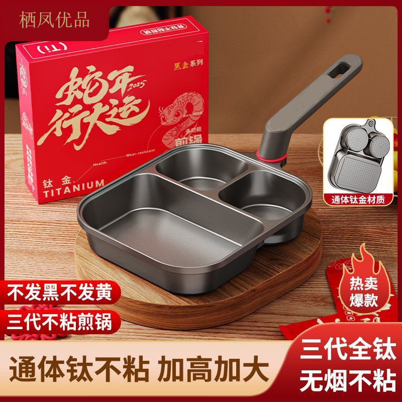 跨境家用钛金煎蛋锅三合一平底煎锅肉蛋堡不沾锅厂家批发支持代发
