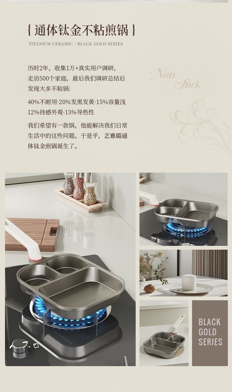 [チタンセラミック・ブラックゴールド] Yi Yaluと同じスタイルのスリーインワンフライパン朝食パンオムレツエッグバーガーパン家庭用