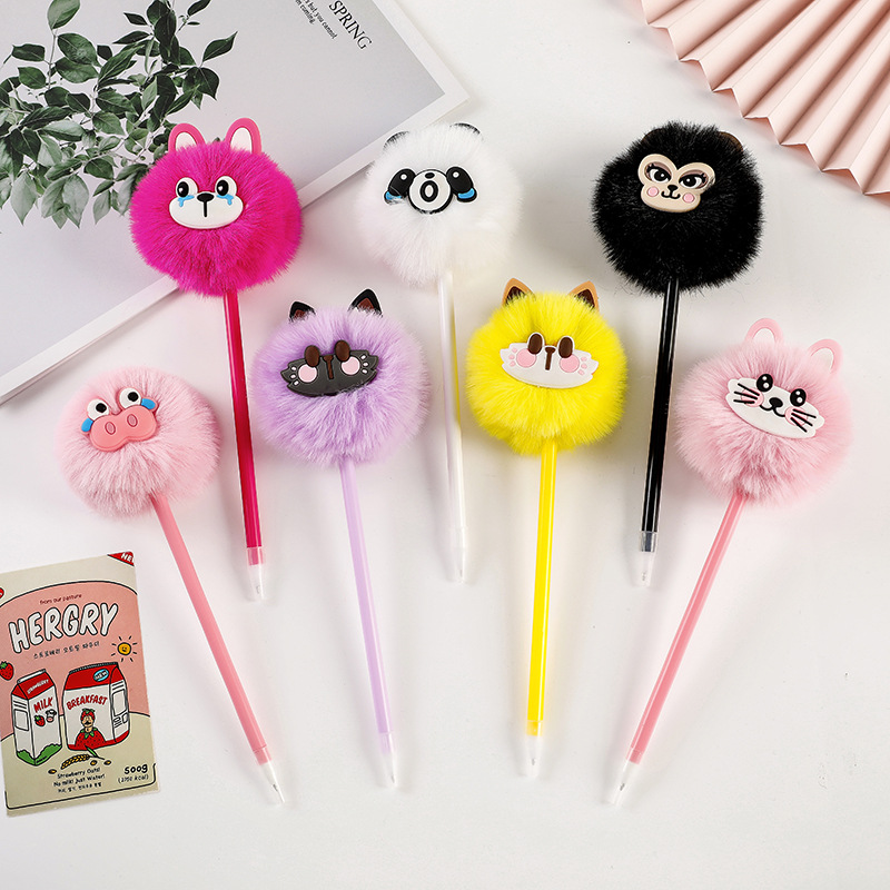 新しい漫画動物毛玉ペンかわいいウサギ子供ぬいぐるみボールペンパンダ子猫毛玉署名ペン