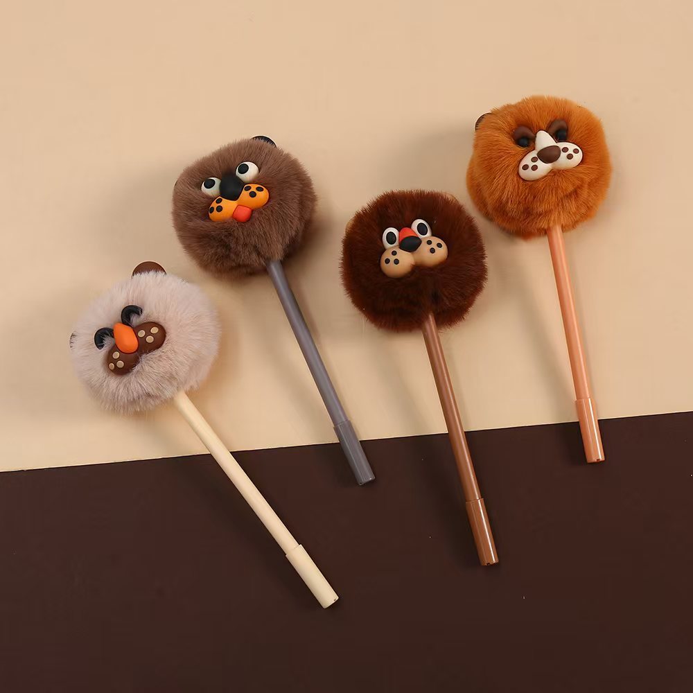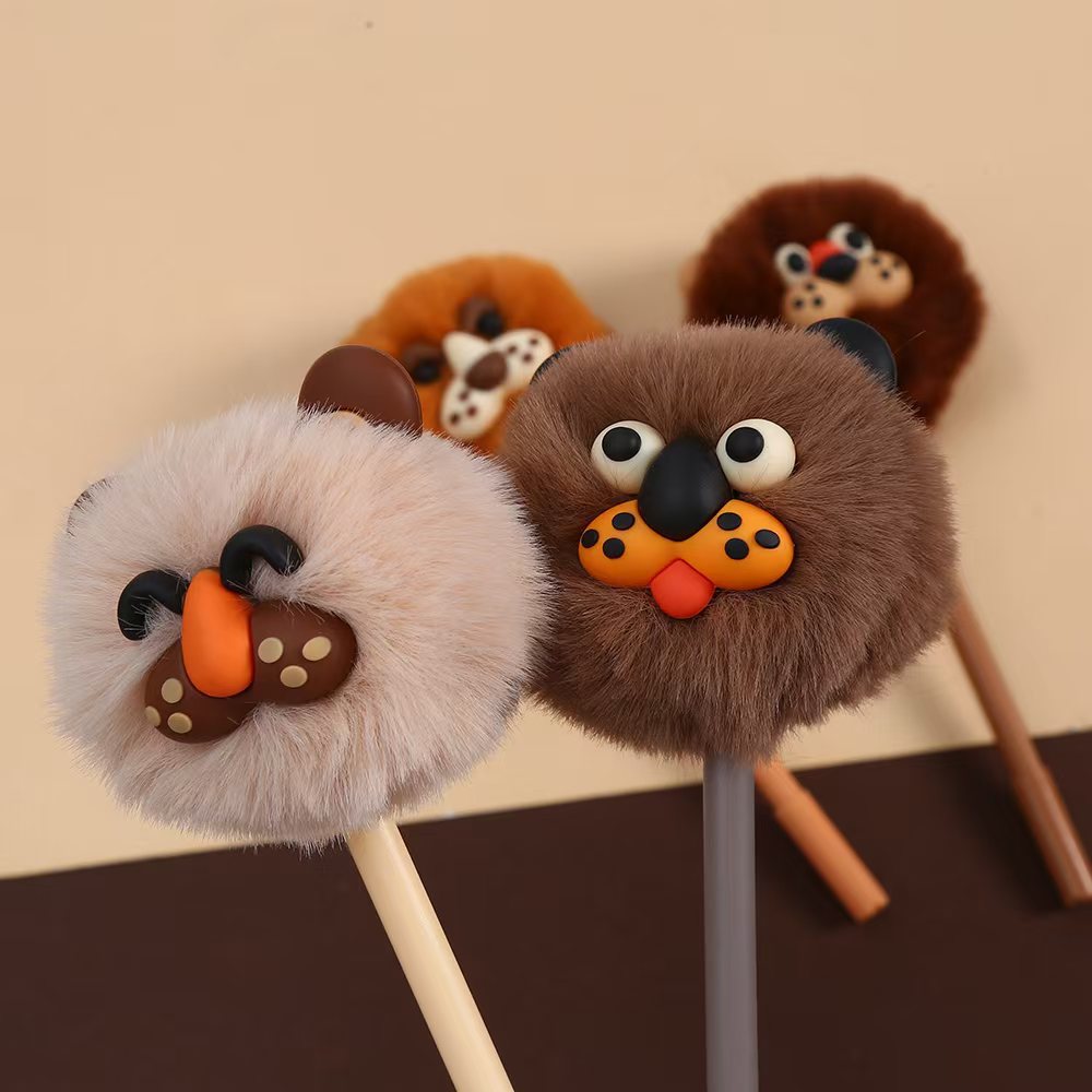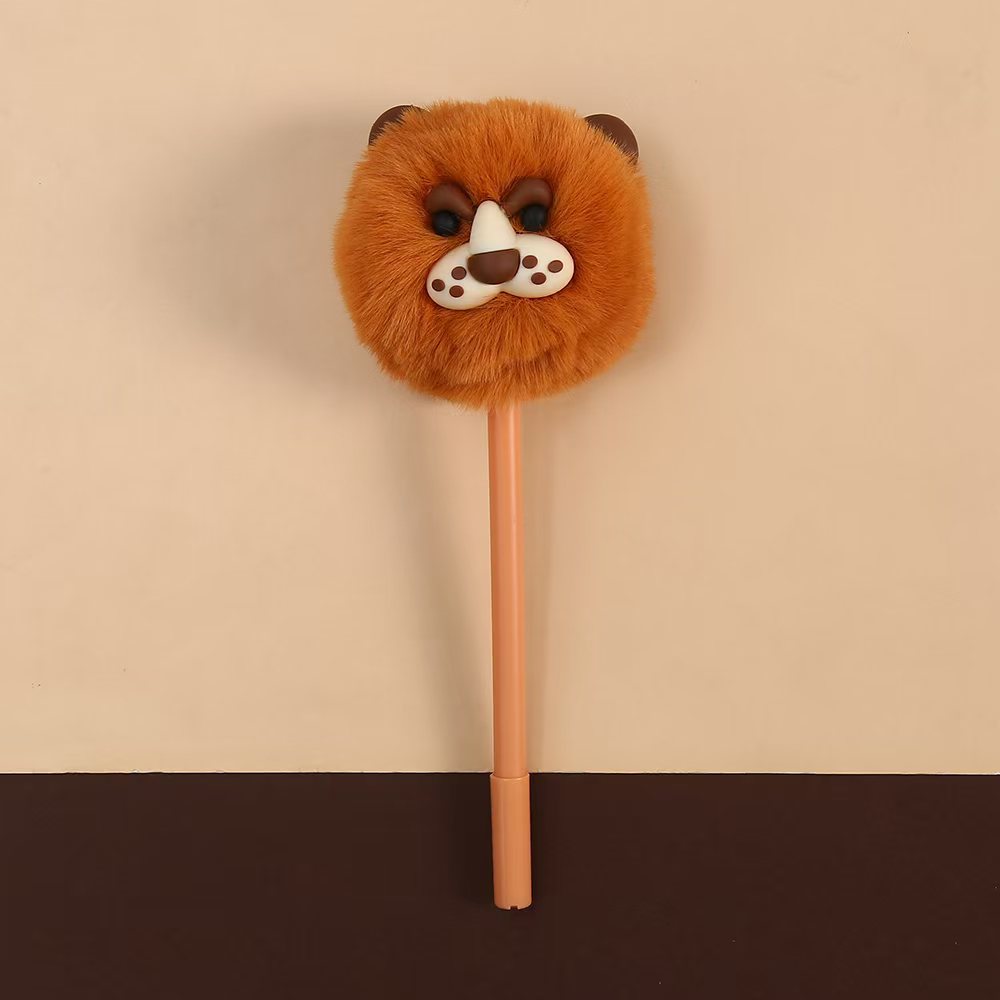 狮子毛球中性笔 可爱创意立体毛绒狮子动物毛毛球水笔学生学习文