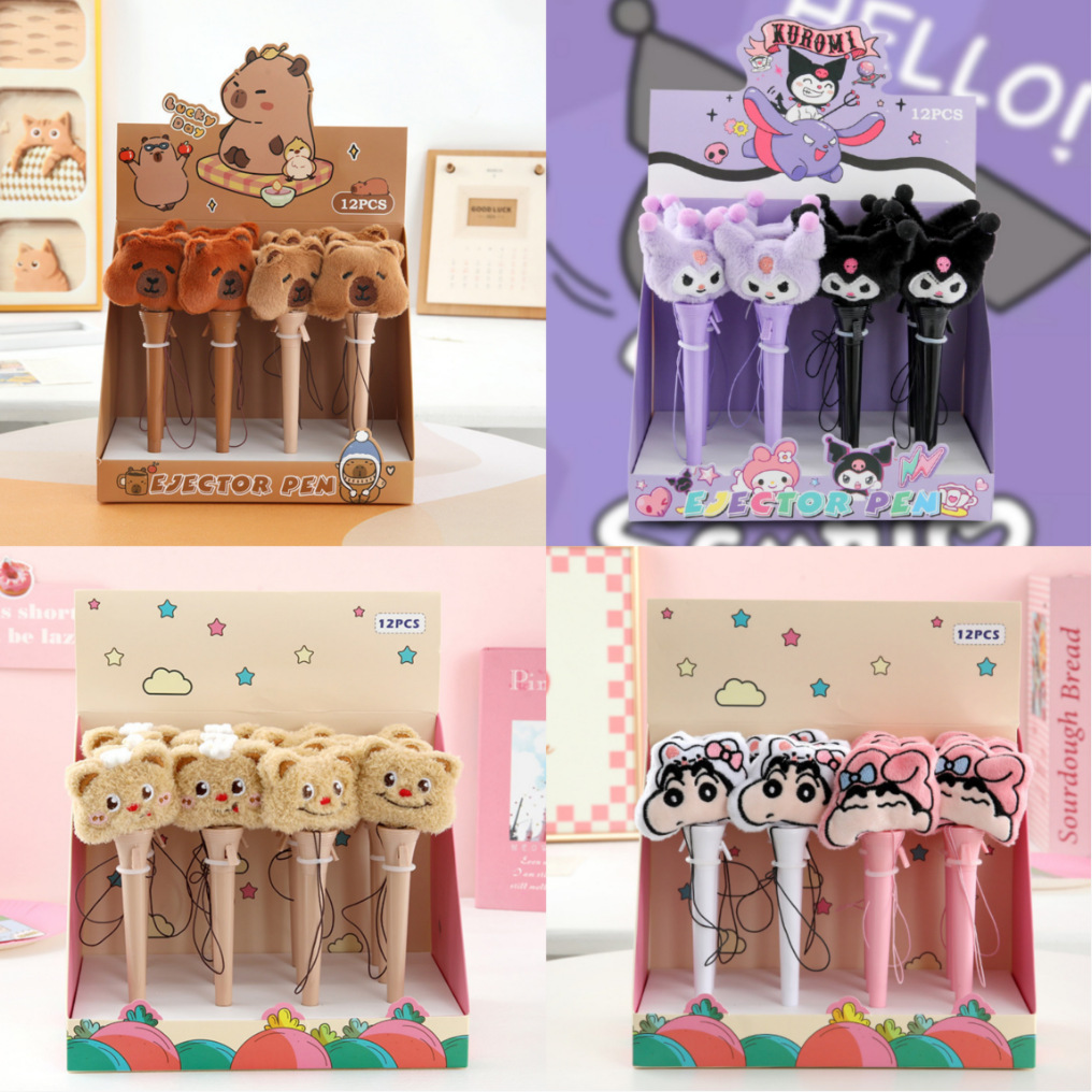 可爱毛绒玩偶弹跳中性笔卡皮巴拉奶油小熊酷米学生娱乐趣味弹射笔