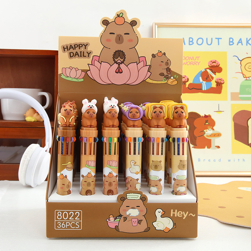 毛绒卡皮巴拉10色圆珠笔毛绒绒手感多色笔手帐彩色笔学生学习文具