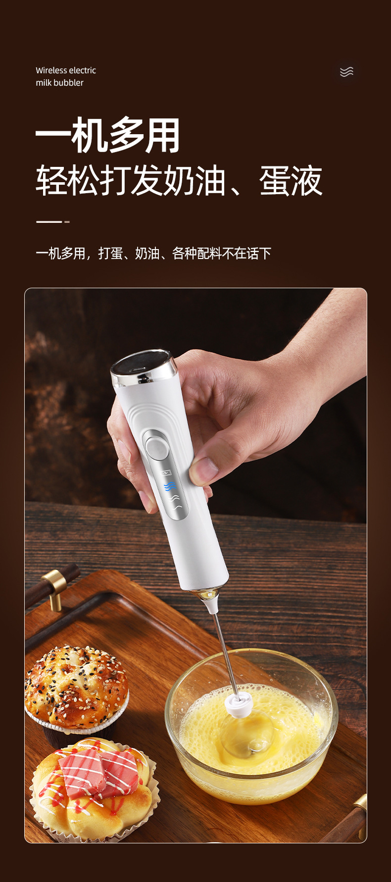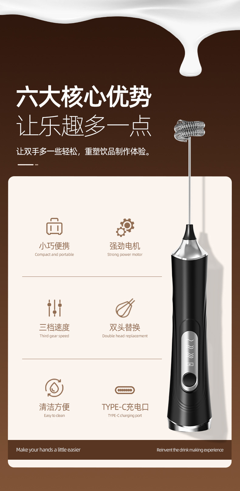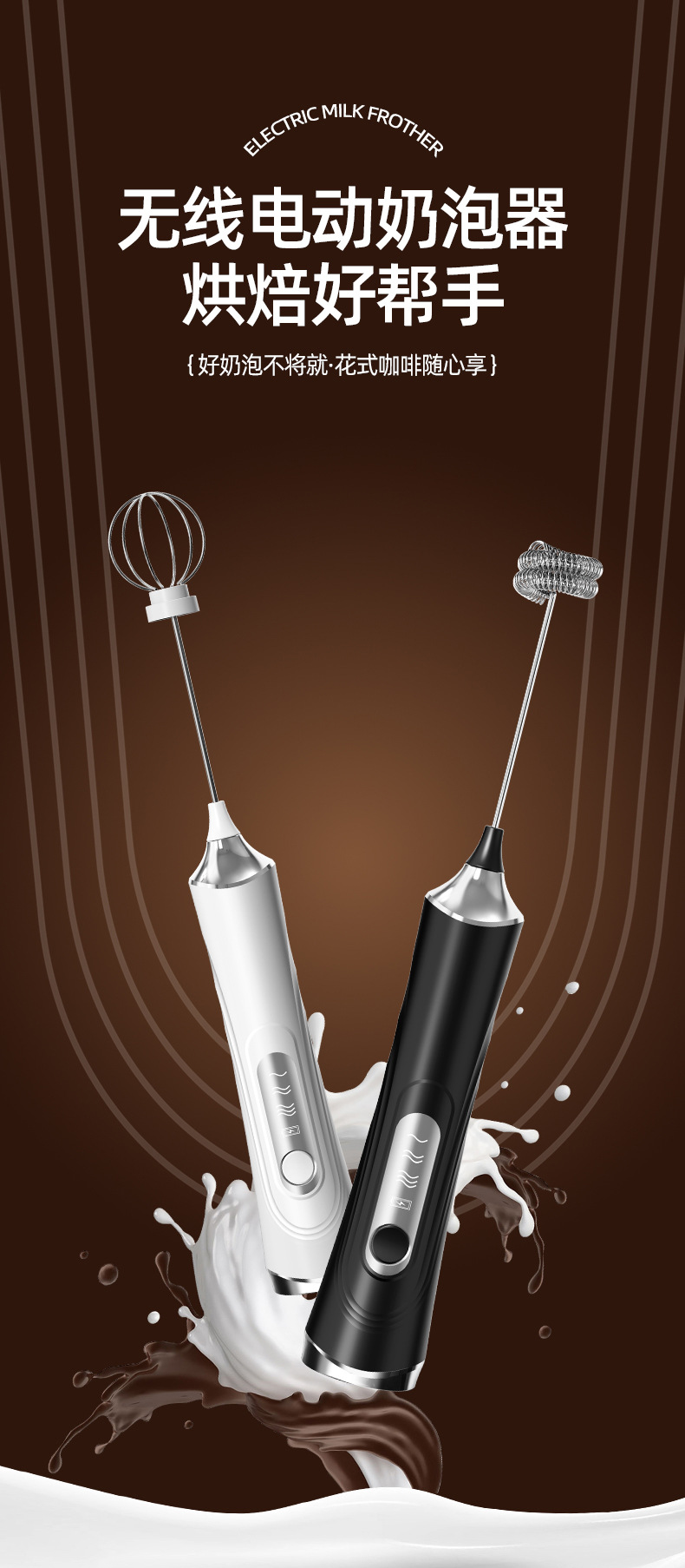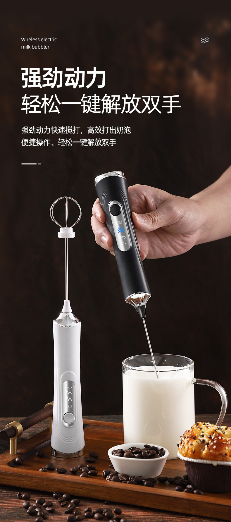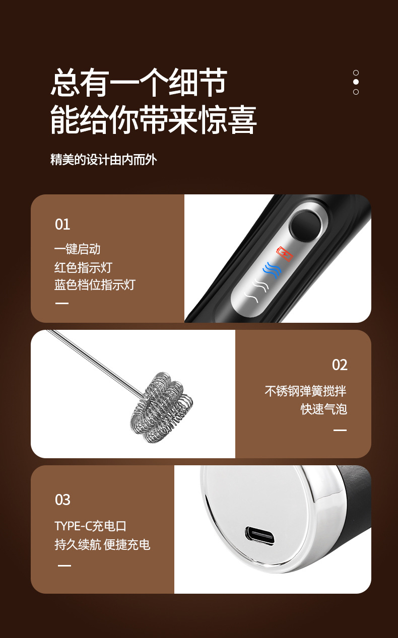 跨境定制电动打奶打蛋器无线USB咖啡奶泡打泡器搅拌器家用打发器