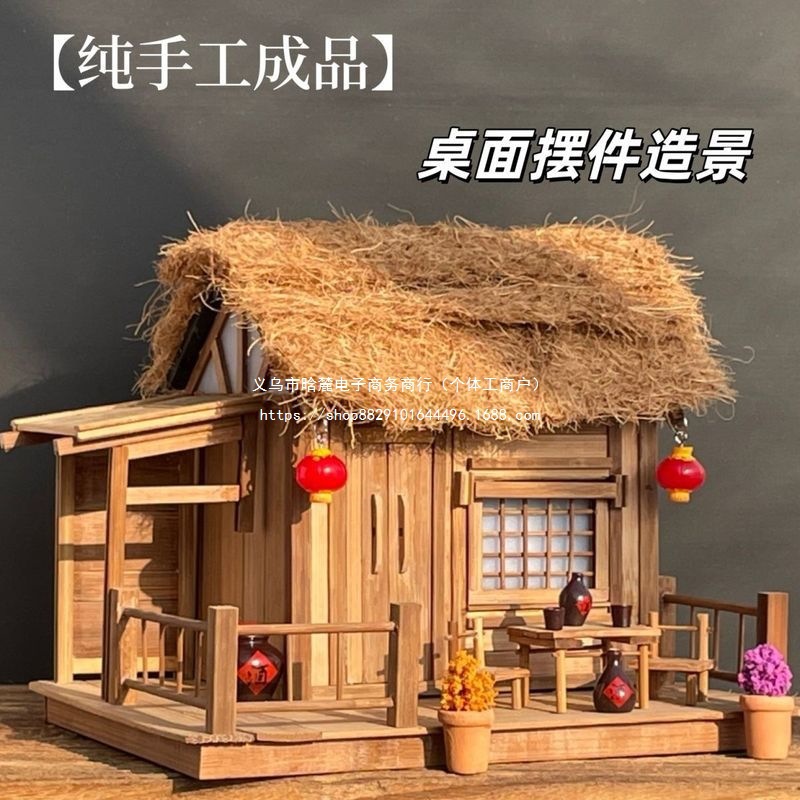 室内摆件小房子纯手工可亮灯小木屋鱼缸造景装饰创意微缩景观装