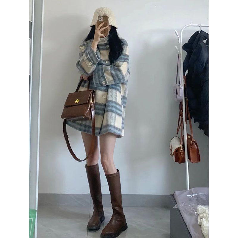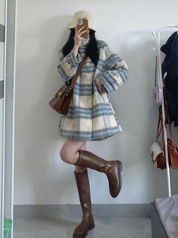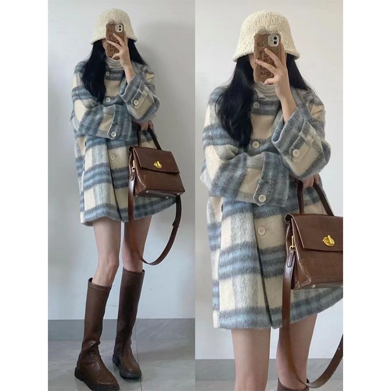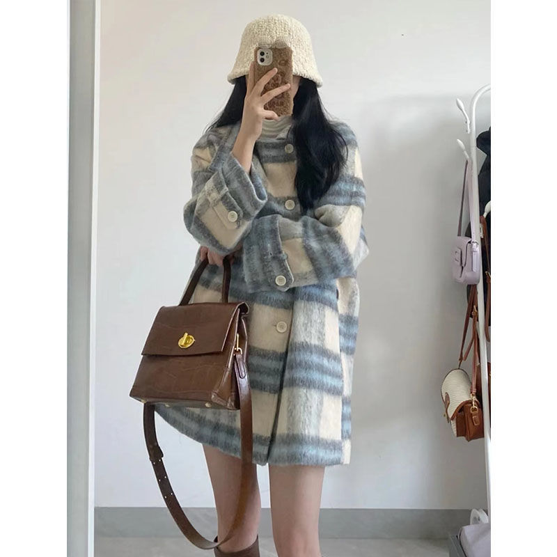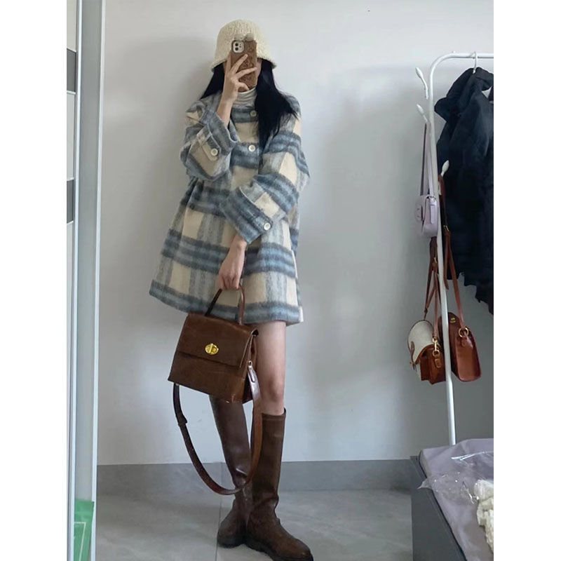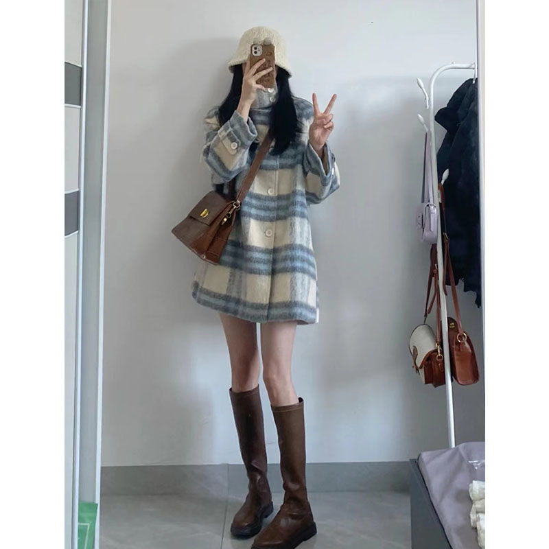チェック柄ウールコート女性のための 2025 秋と冬の新しいメイラード韓国カジュアルスタイル厚いウールコートトレンディ