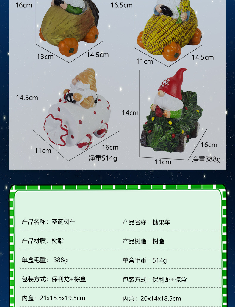 クロスボーダークリエイティブデスクトップオーナメント、樹脂製クリスマスコーン収穫祭キャンディーカート、手工芸品、ギフト家具装飾